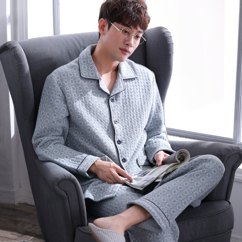 冬季男士睡衣长袖纯棉夹棉秋季男款加厚春秋冬天加大码家居服套装