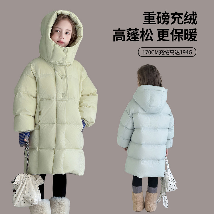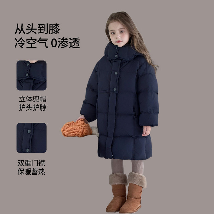 图图小象童装女童羽绒服2025冬季新款三防加厚90绒中长款连帽外套