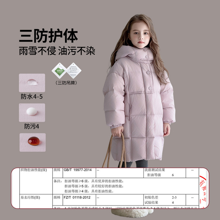 图图小象女童中长款三防羽绒服冬
