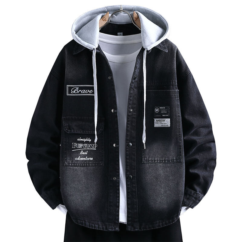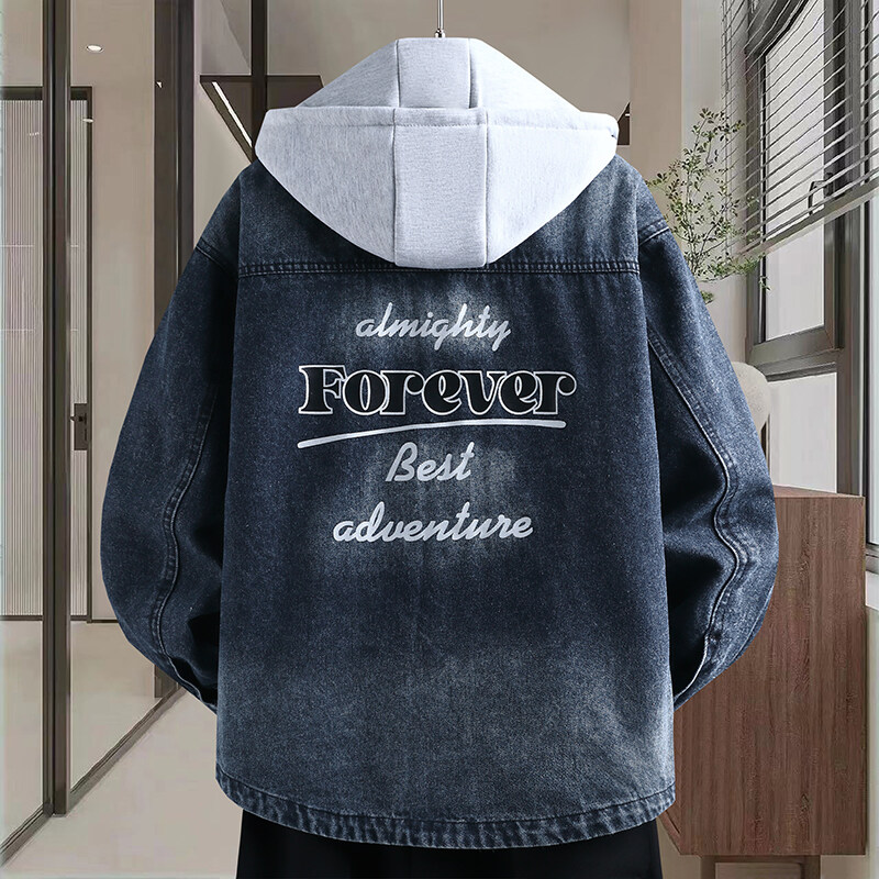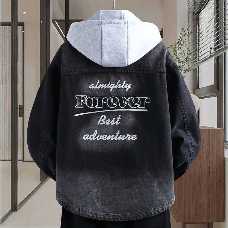 男士牛仔外套春季帅气初高中学生潮牌休闲连帽上衣青少年男孩夹克