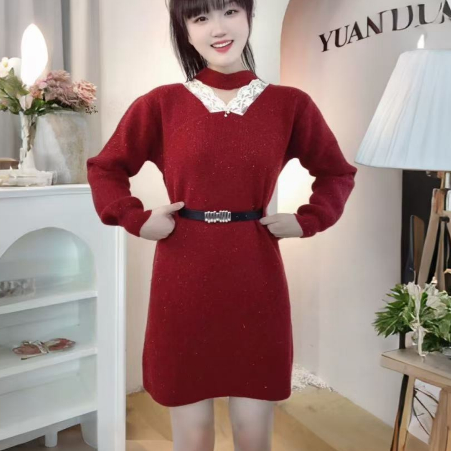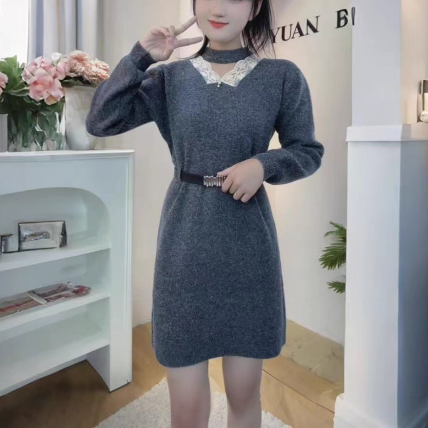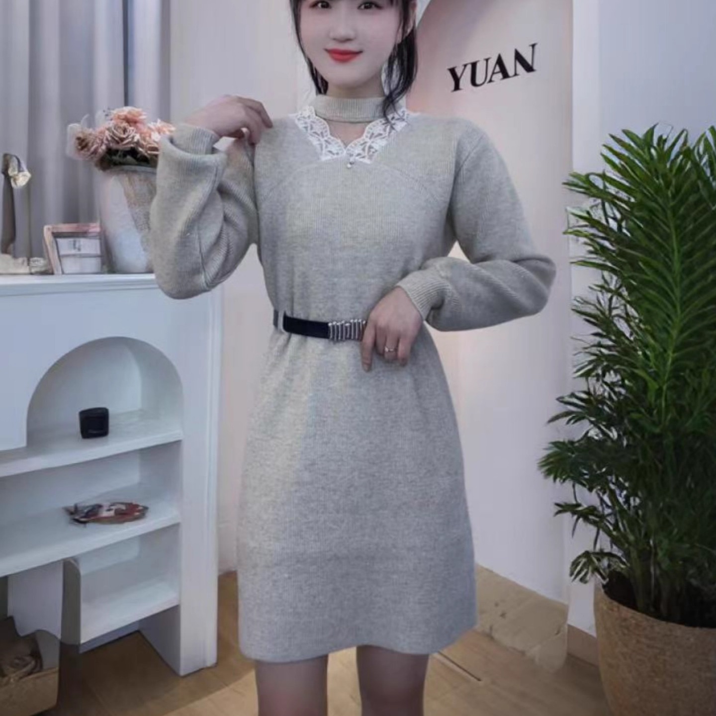 气质针织连衣裙女秋冬2025新款宽松显瘦减龄洋气配大衣打底毛衣裙