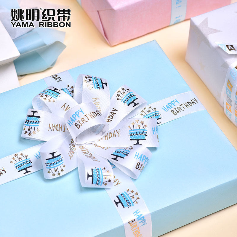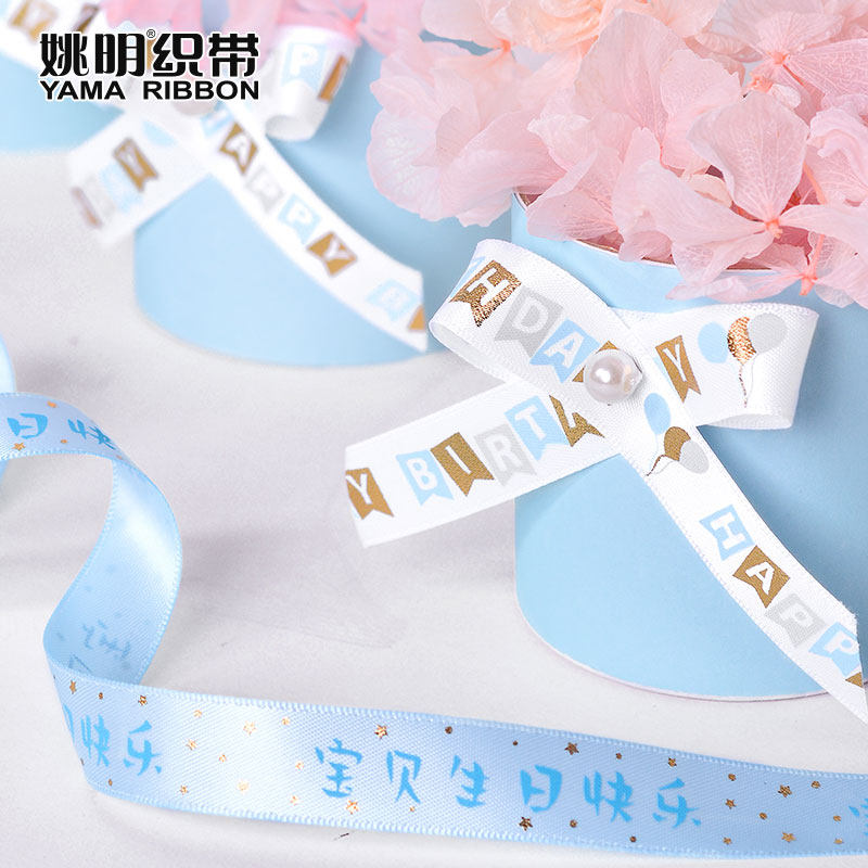 姚明织带烫金丝带宝宝周岁生日祝福彩带礼物包装盒纪念日装饰缎带