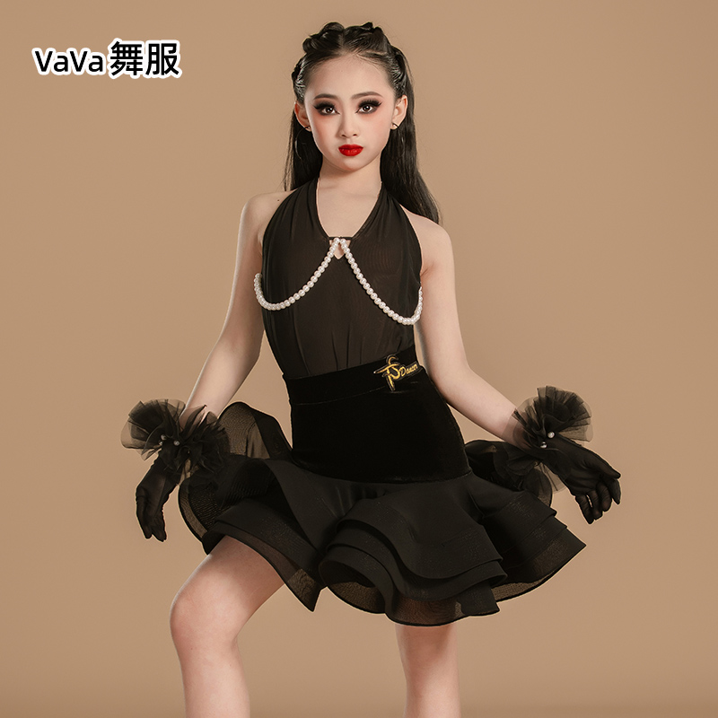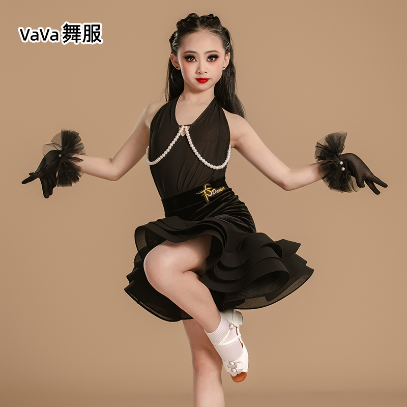 vava舞服专业少儿拉丁舞服儿童练功服秋表演服高端练功裙V领分体