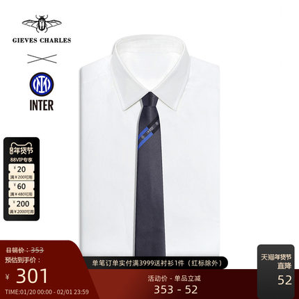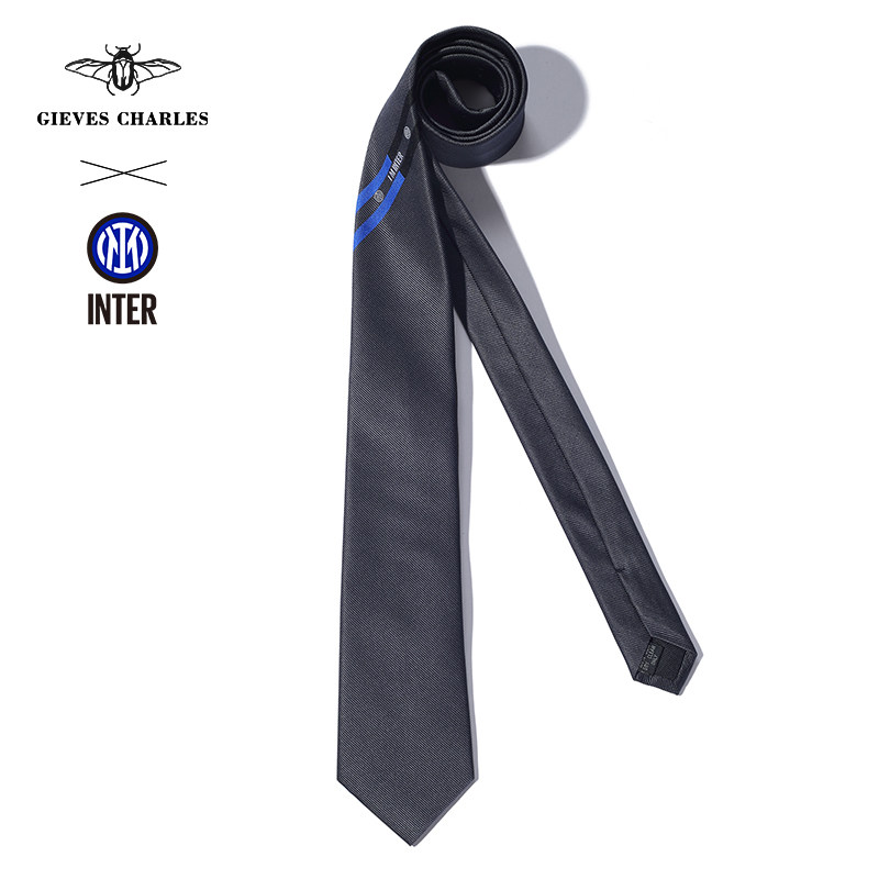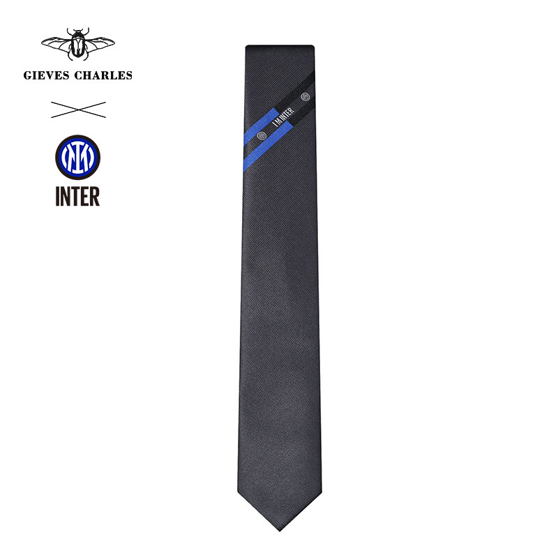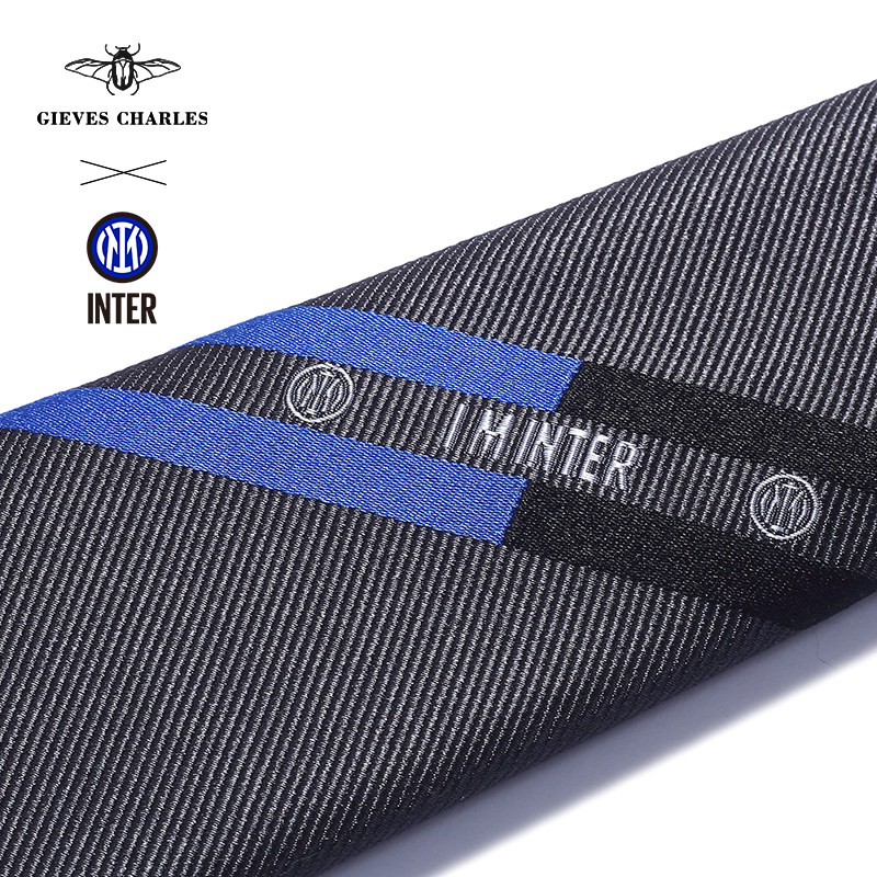 国际米兰官方授权GIEVES CHARLES蓝白之帆条纹男士真丝刺绣领带