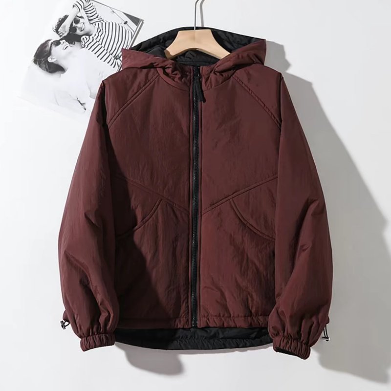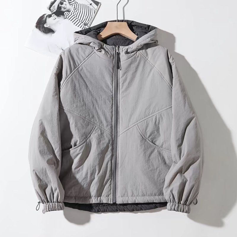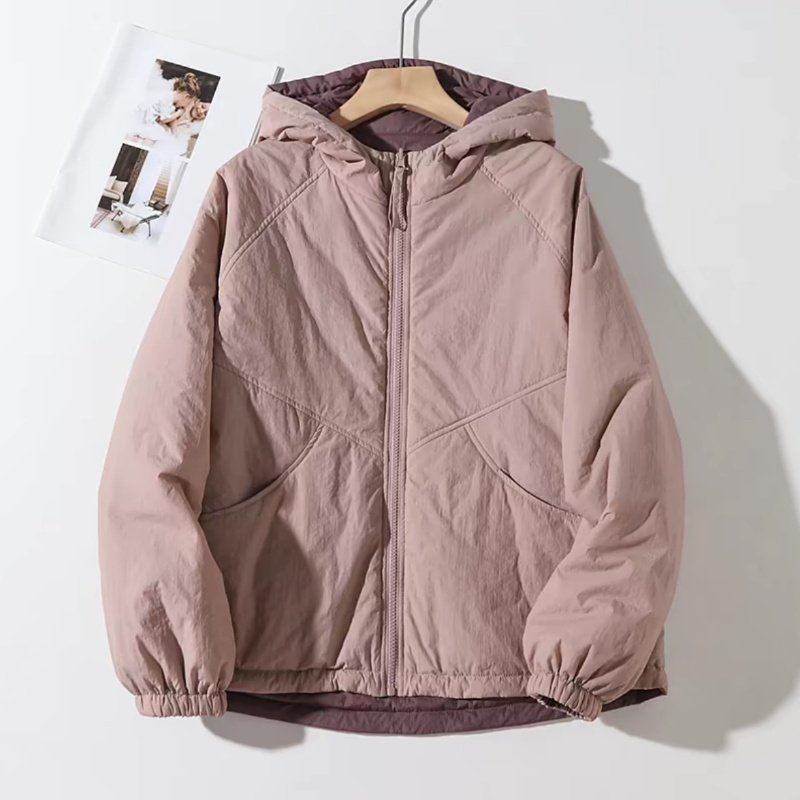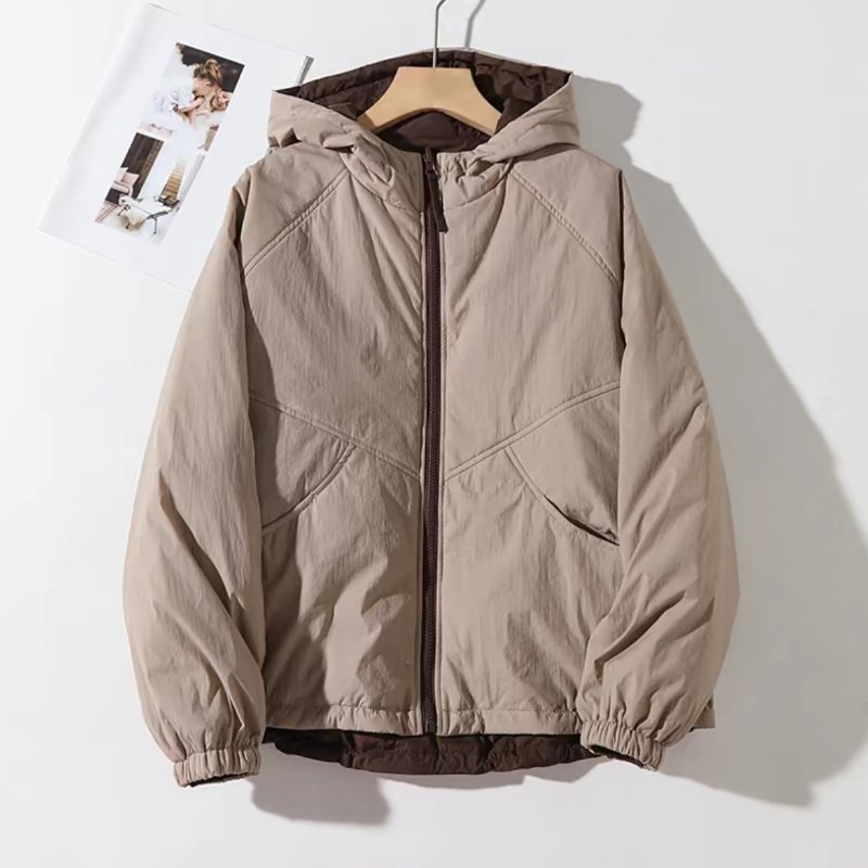时尚百搭撞色两面穿加厚保暖棉衣女2025冬季新款连帽百搭夹棉外套