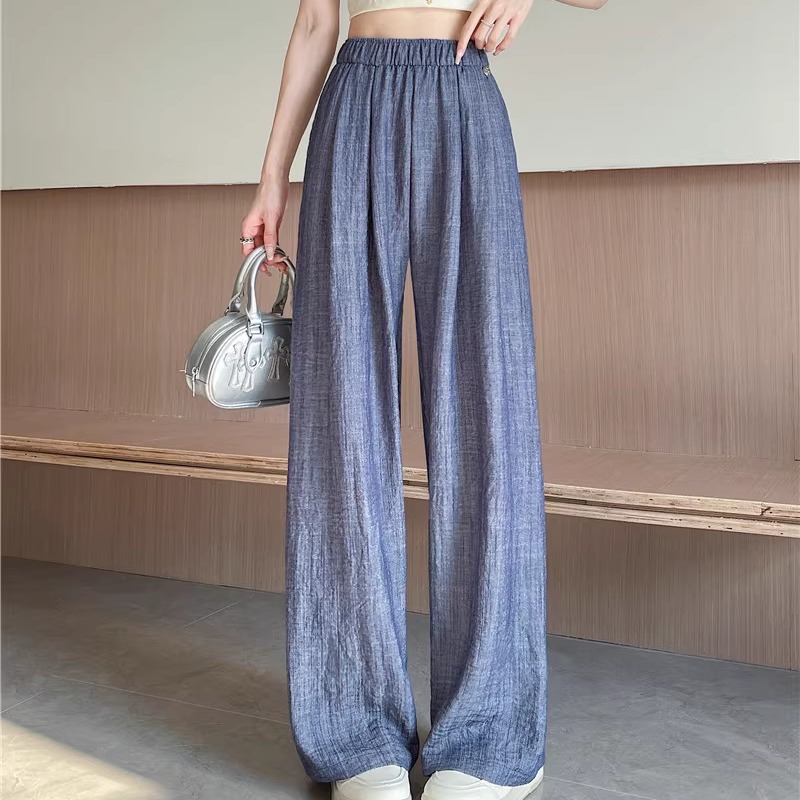 肌理感松紧腰直筒休闲裤阔腿裤女