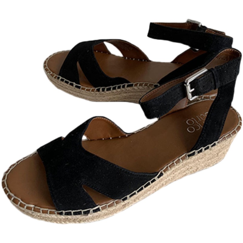 2024年夏季真皮磨沙中跟露趾麻底时装凉鞋外贸欧美大码女扣带罗马