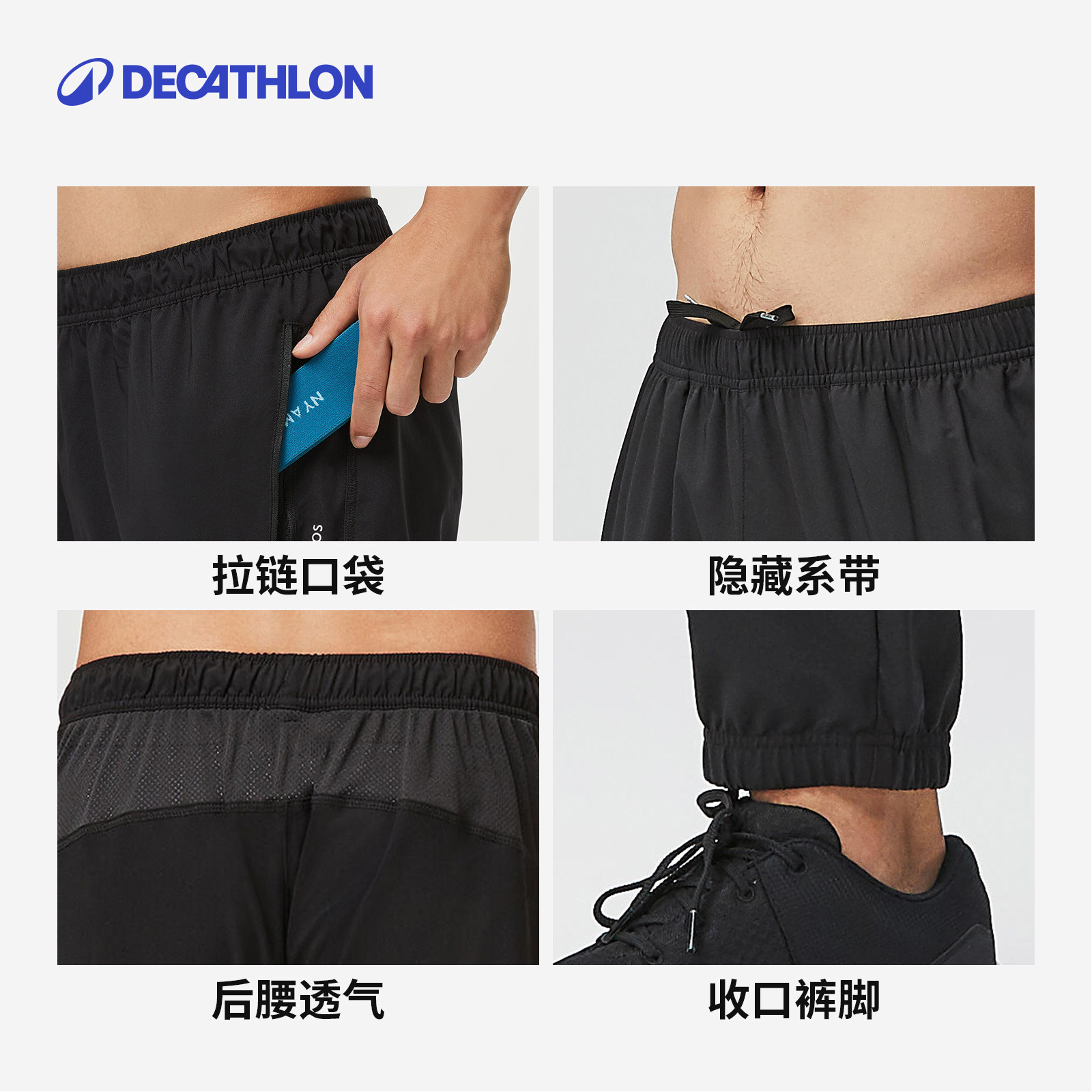 迪卡侬速干裤男裤秋薄款休闲梭织健身长裤冰丝裤子男运动裤SAP1