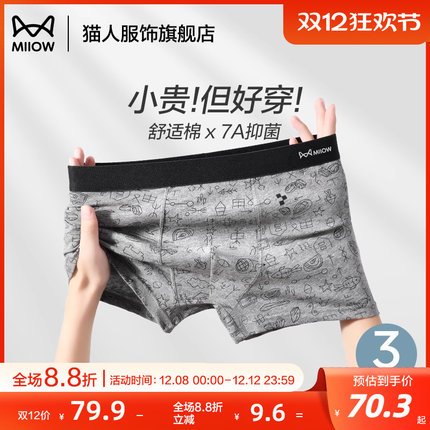 猫人男士纯棉内裤四角2025新款青少年透气印花男式平角裤短裤男生