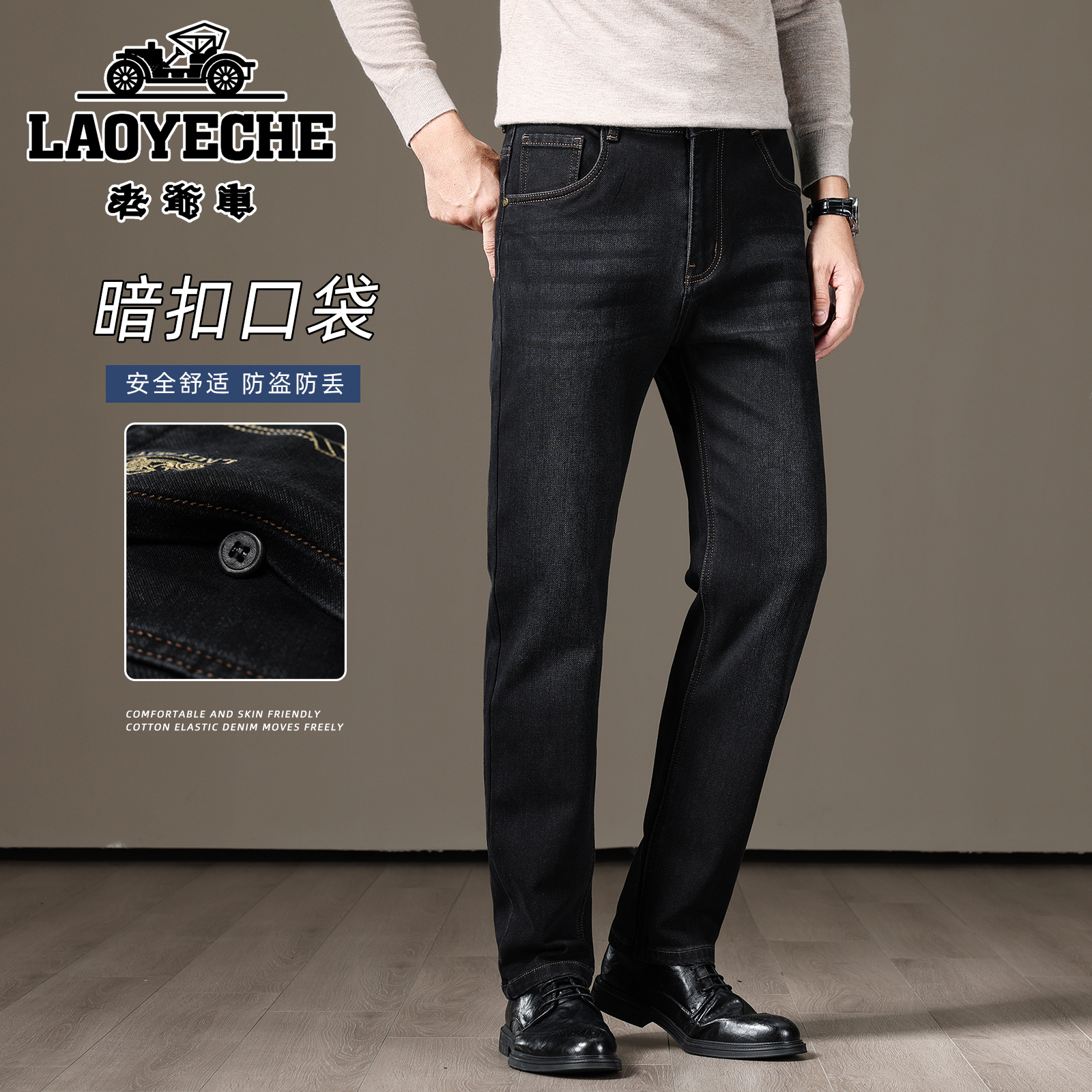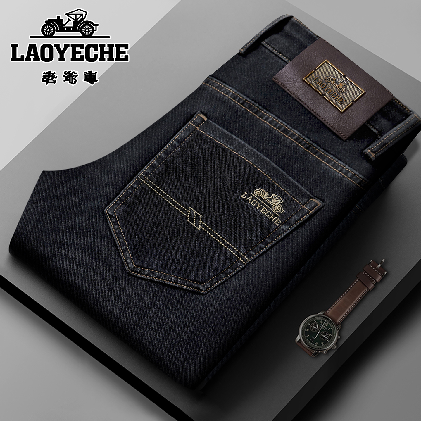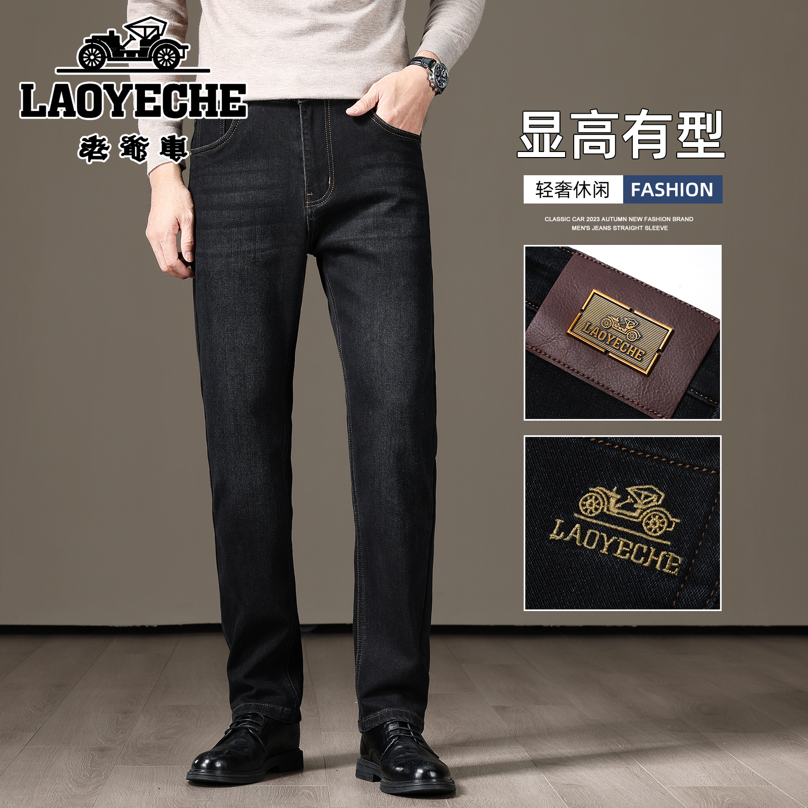 老爷车品牌专柜男士牛仔裤弹力秋季新款宽松直筒裤男香港高端商务