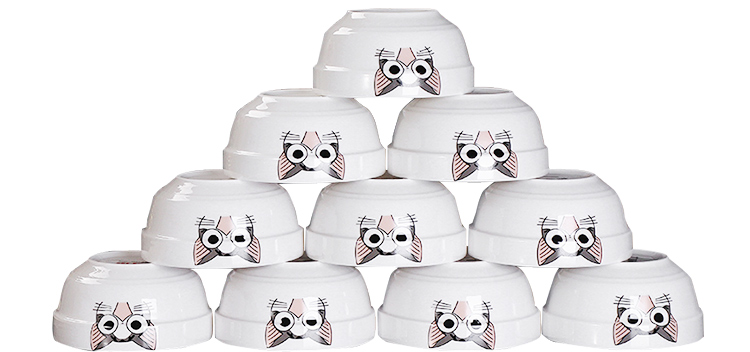 10个家用米饭碗4.5/5英寸碗套装景德镇陶瓷饭碗卡通餐具 微波适用