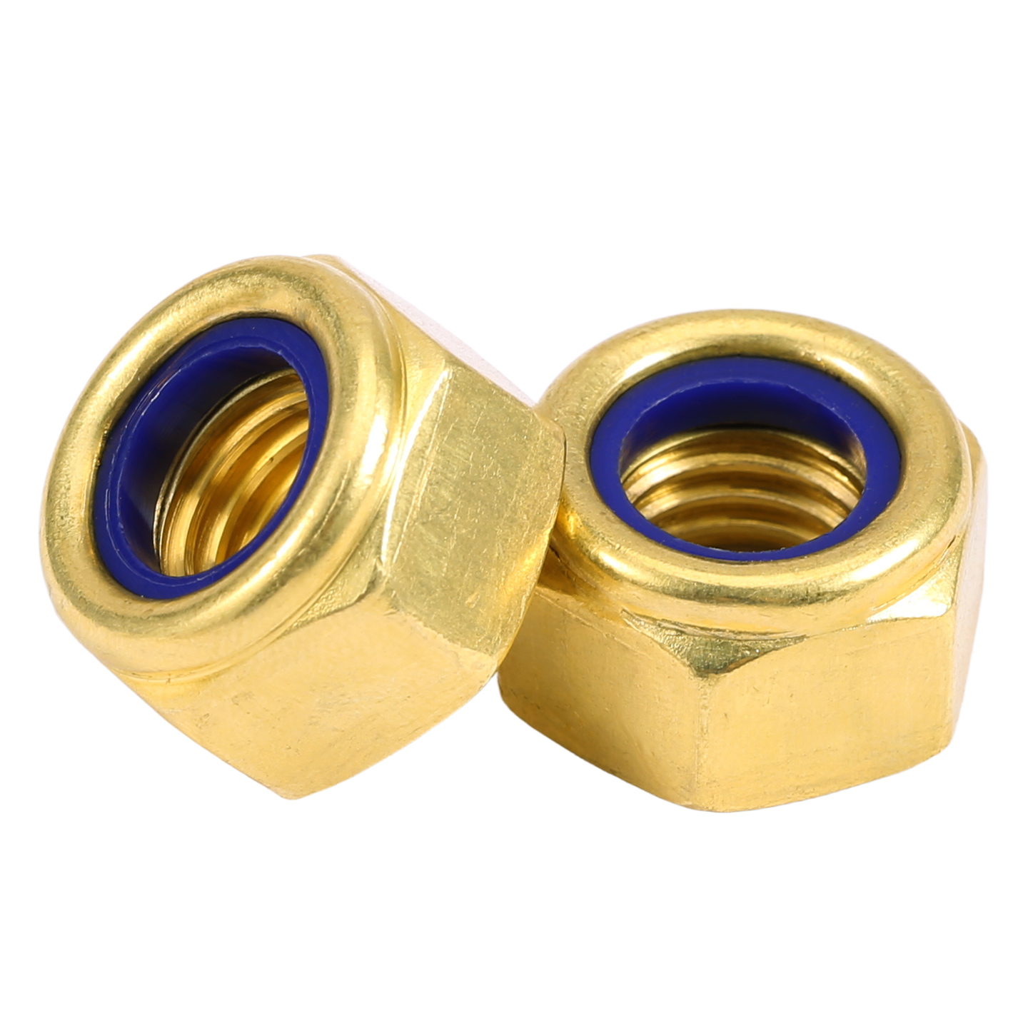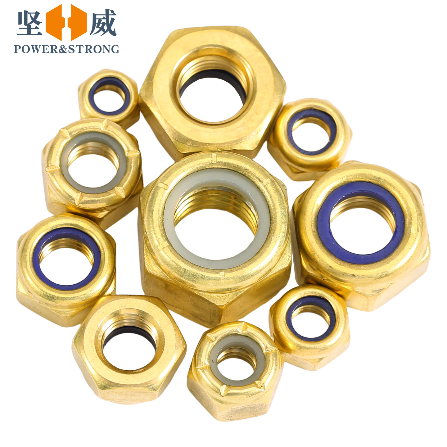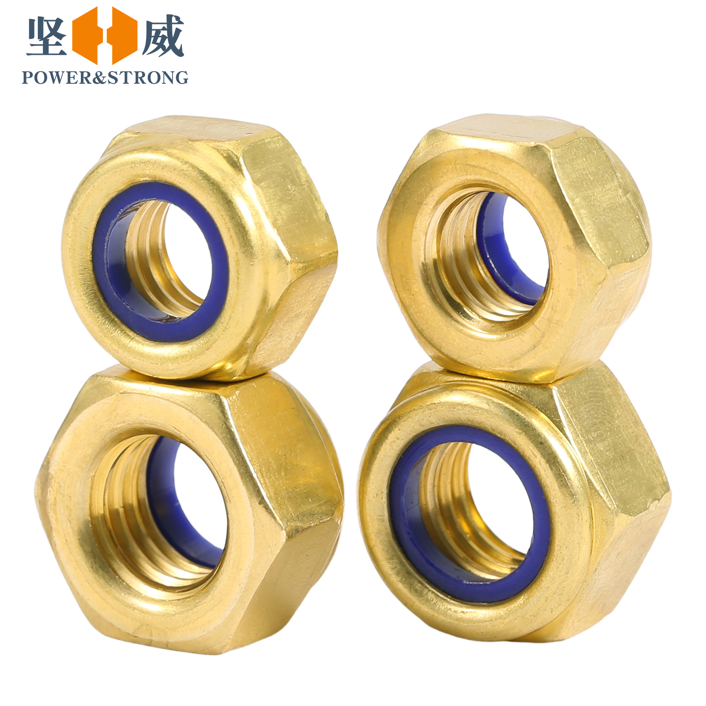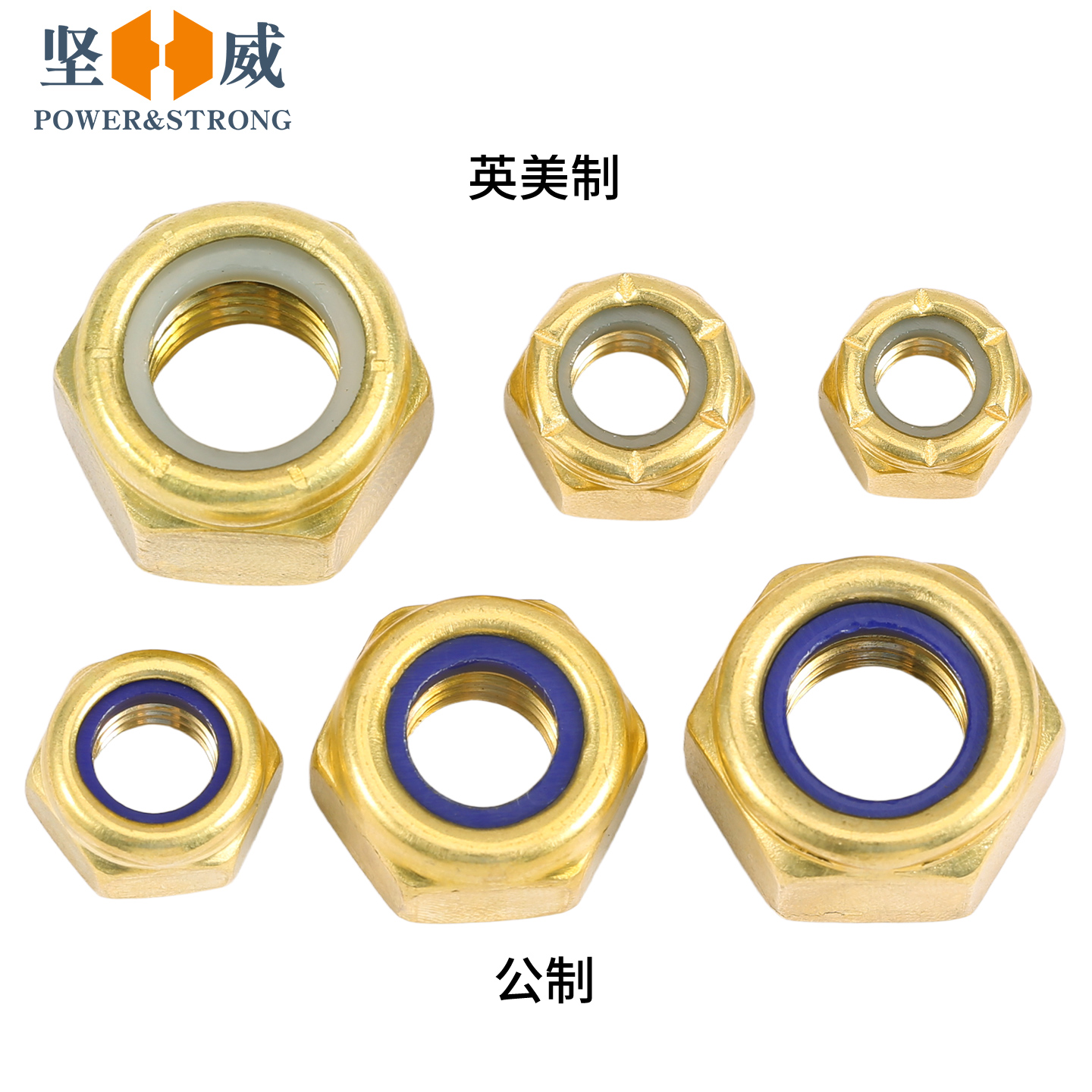 黄铜六角防松螺母美制防滑螺帽带尼龙片自锁防脱落M4M5M6M8-M12