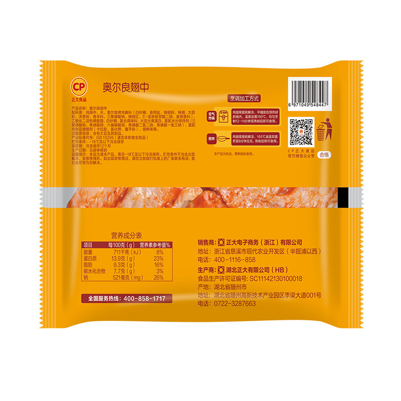 CP正大奥尔良鸡翅中冷冻生鲜半成品调理鸡翅烤翅空气炸锅烧烤食材