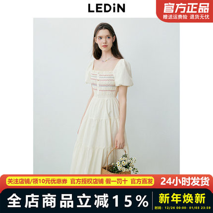 乐町温柔小奶包连衣裙夏季新款民族风长裙撞色打揽方领连衣裙