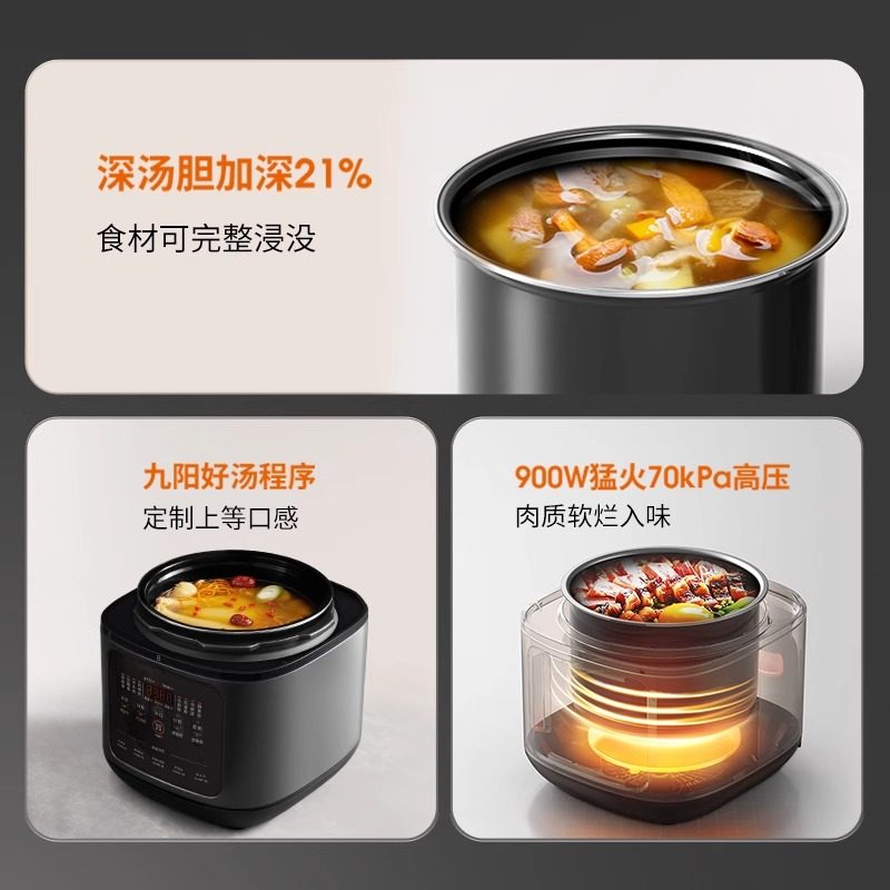 九阳电饭煲家用5人压力锅双胆高压锅5升多功能电压力锅烹饪机