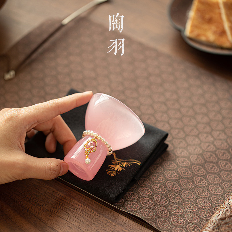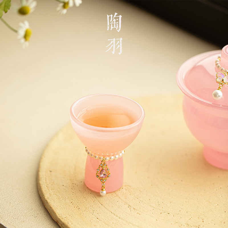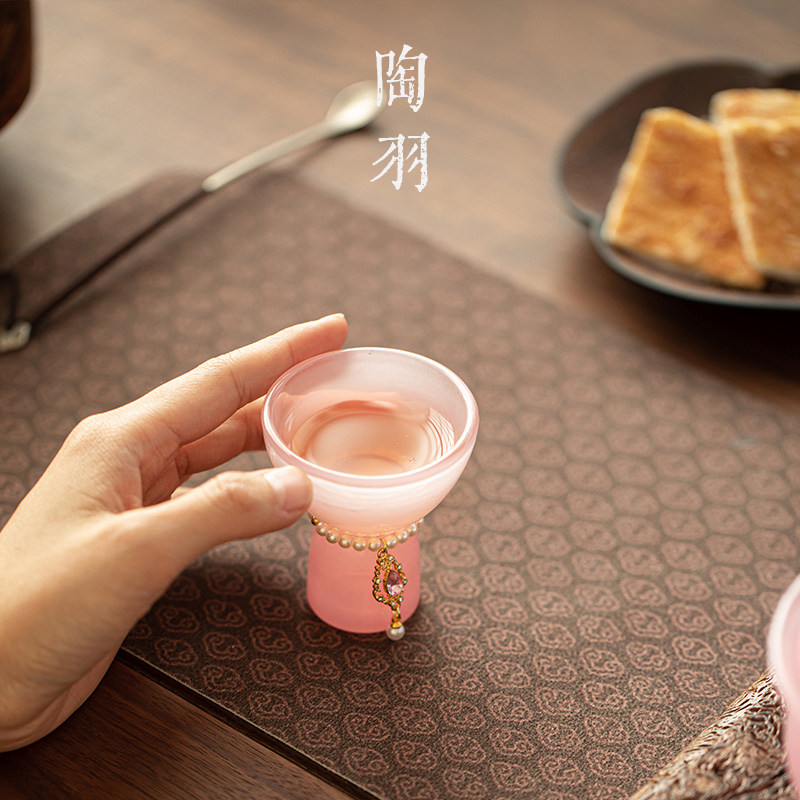 加厚玻璃海棠粉高脚杯家用精致小茶杯客杯功夫茶具主人杯个人专用