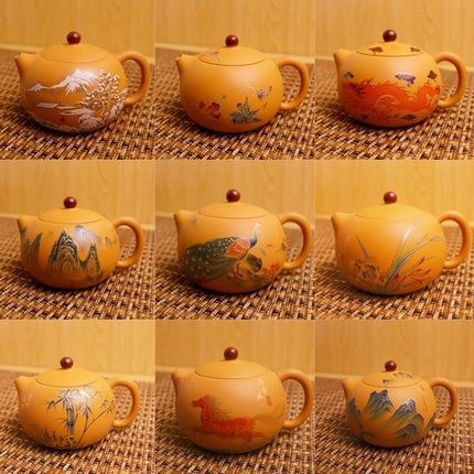 宜兴手工黄金段泥紫砂龙凤呈祥变色西施壶凤鸣壶手绘描金功夫茶具