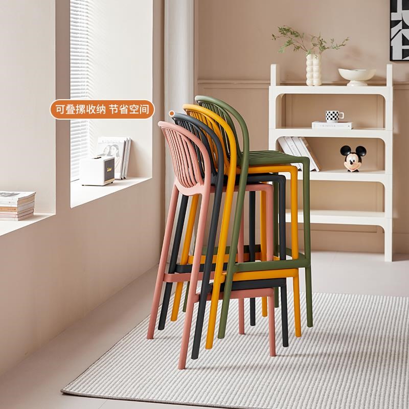 吧台椅家用岛台塑料吧椅户外高脚靠背凳酒吧前台收银高椅