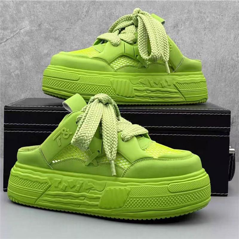 半托男鞋夏季透气网面懒人一脚蹬休闲板鞋男生小众原创小白帆布鞋