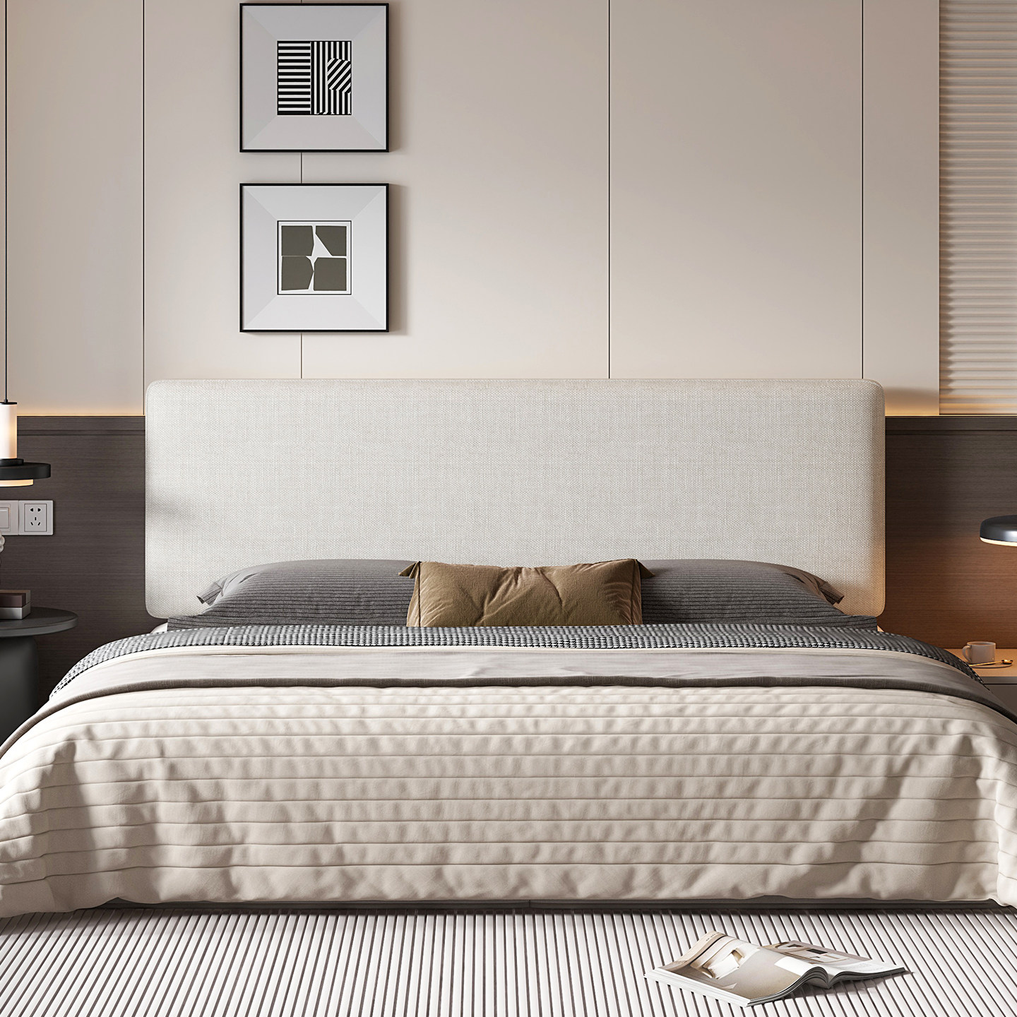 亚麻布现代简约布艺床头靠垫双人床主卧软包靠背垫加厚防撞可拆洗