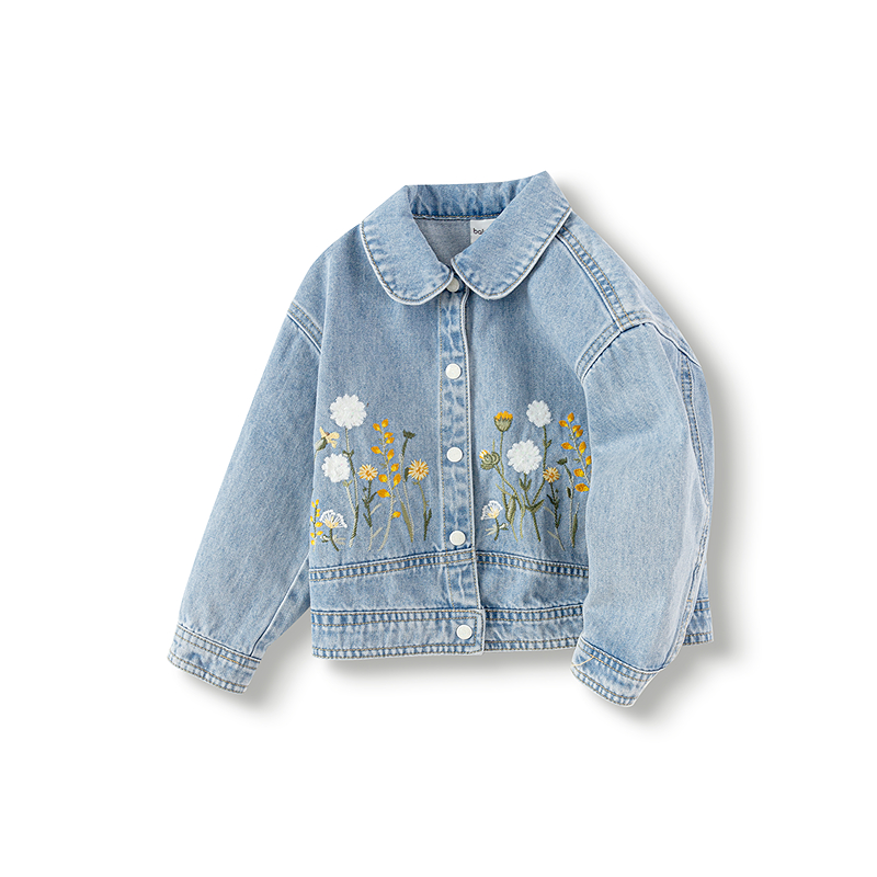 巴拉巴拉女童牛仔外套油画风绣花2025春新款纯棉上衣牛仔短外套潮