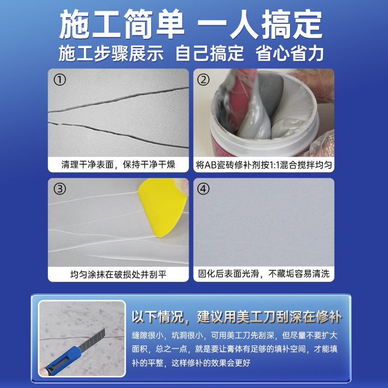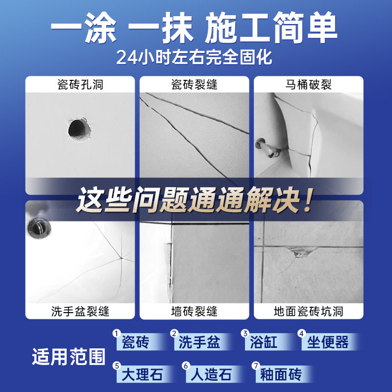 德高瓷砖釉面修补剂陶瓷修复瓷砖开裂破损地砖裂缝坑洞遮丑修补膏