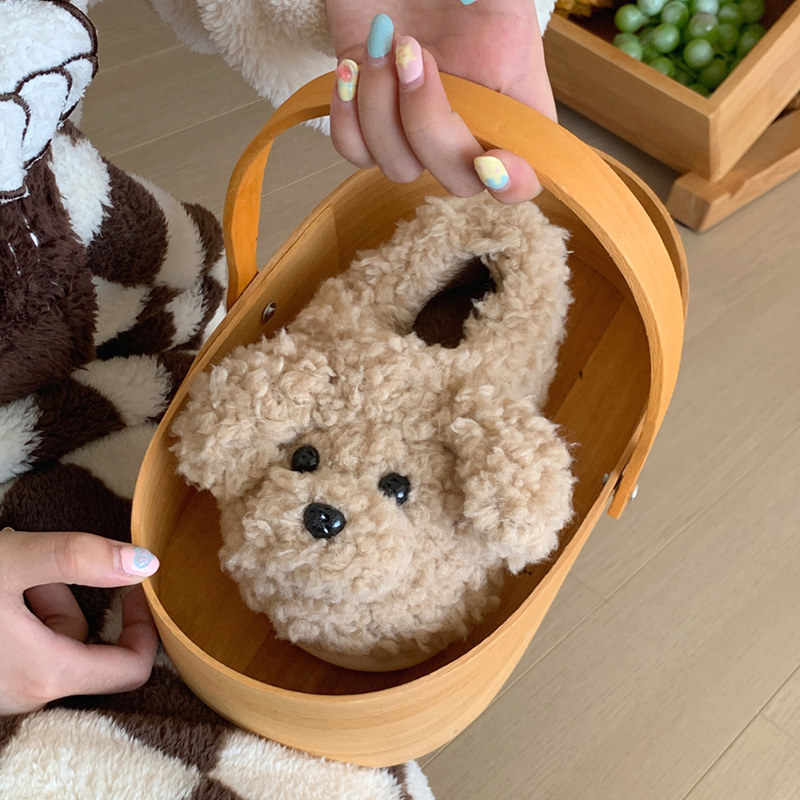 可爱小狗狗亲子棉拖鞋男女秋冬季儿童加绒保暖居家室内包跟毛绒鞋