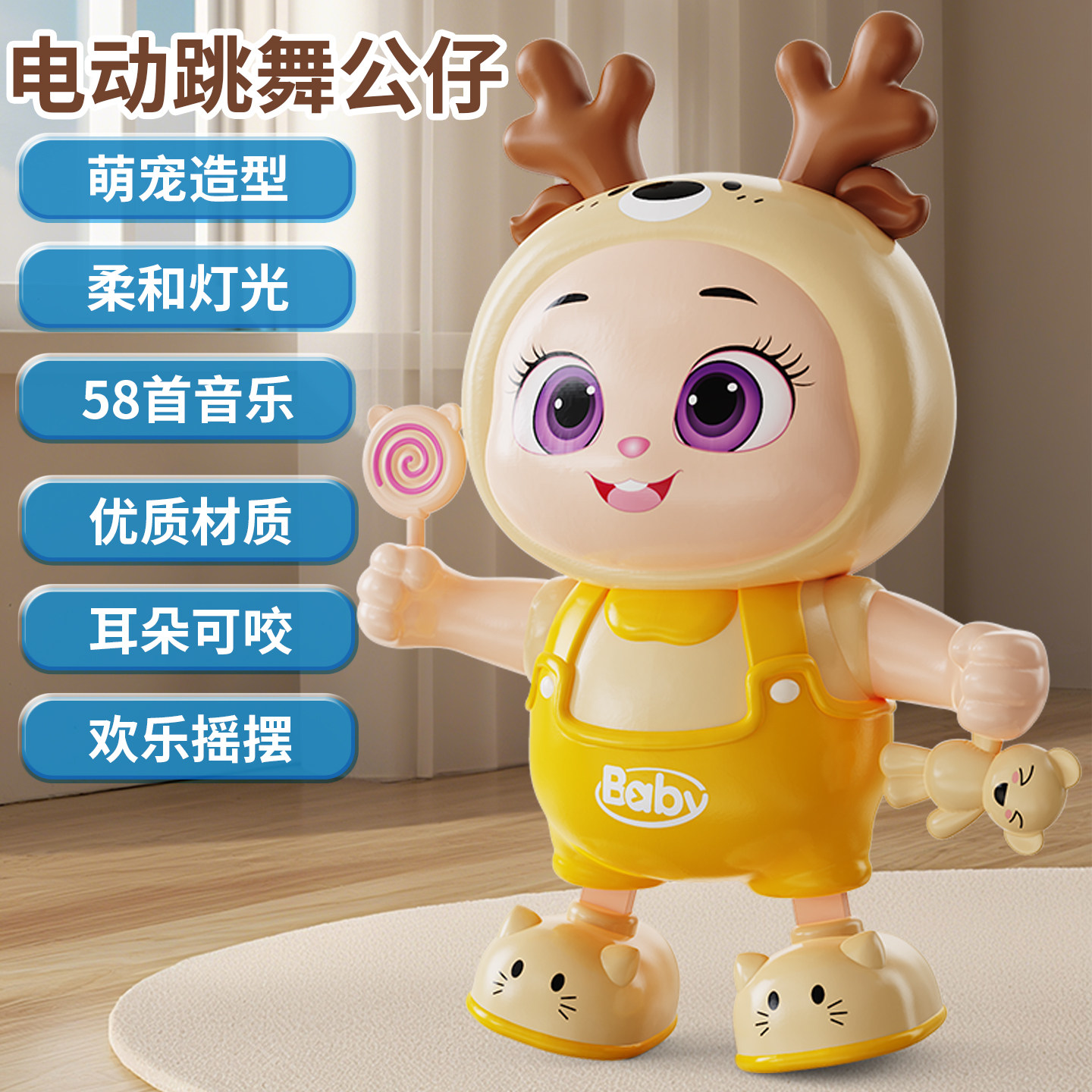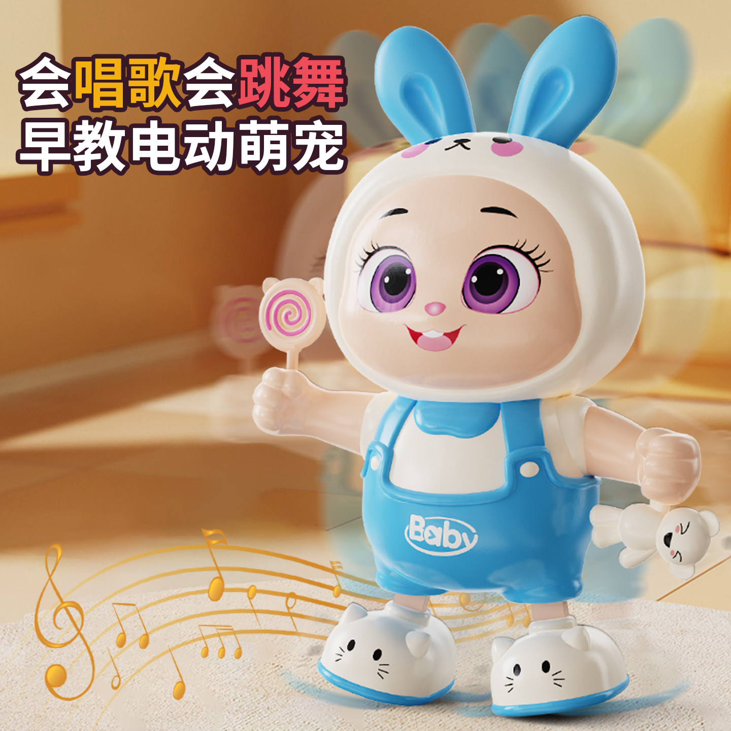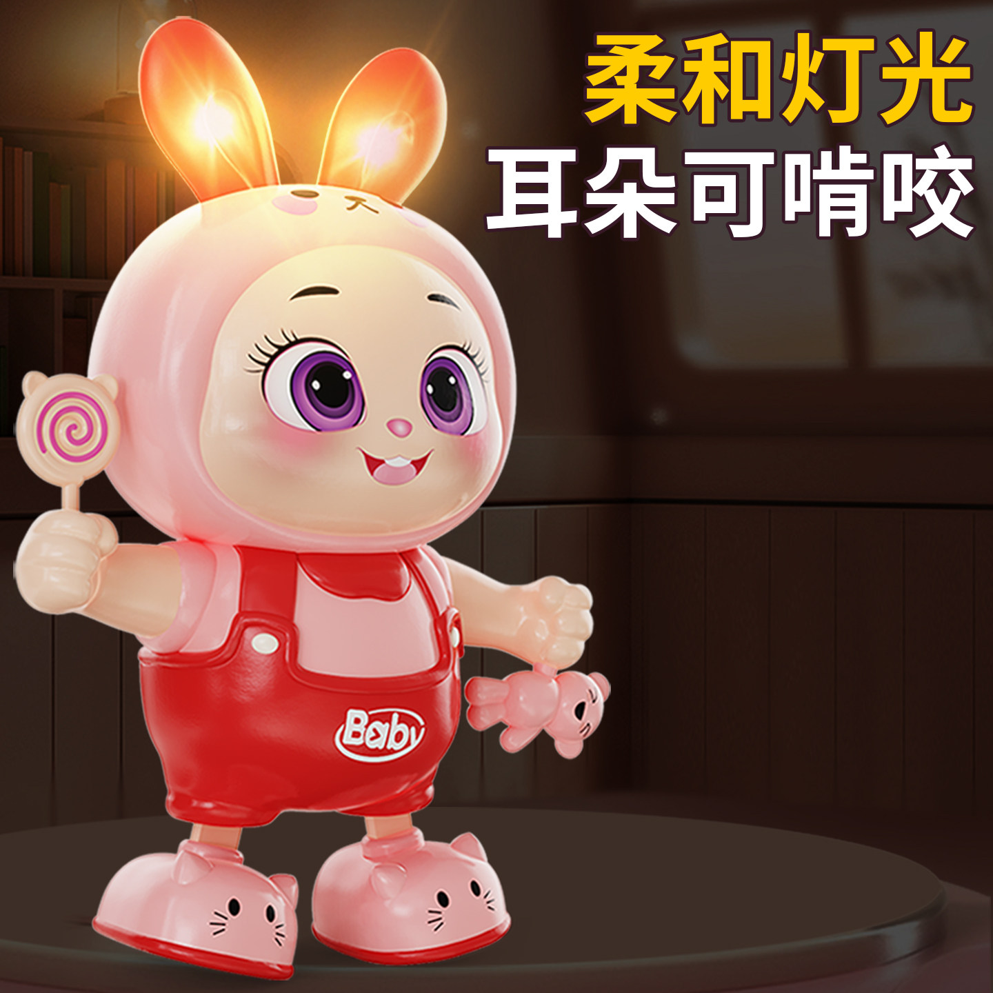 会唱歌走路跳舞的兔子婴儿练习抬头训练宝宝音乐灯光可咬早教玩具