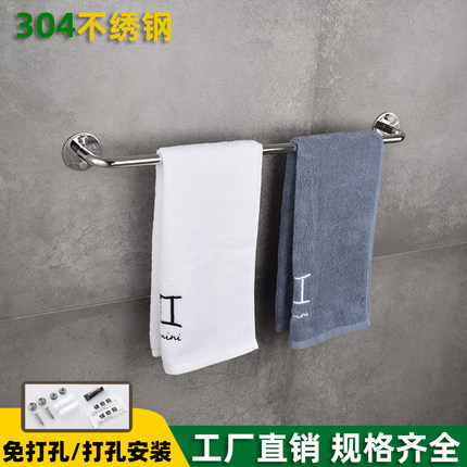 304不锈钢毛巾架免打孔卫生间毛巾杆浴室单杆加长壁挂毛巾挂杆