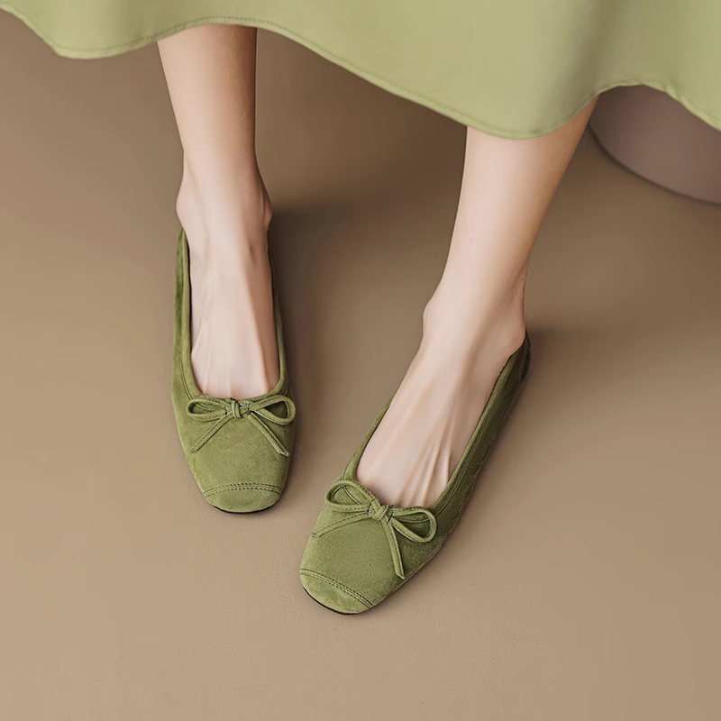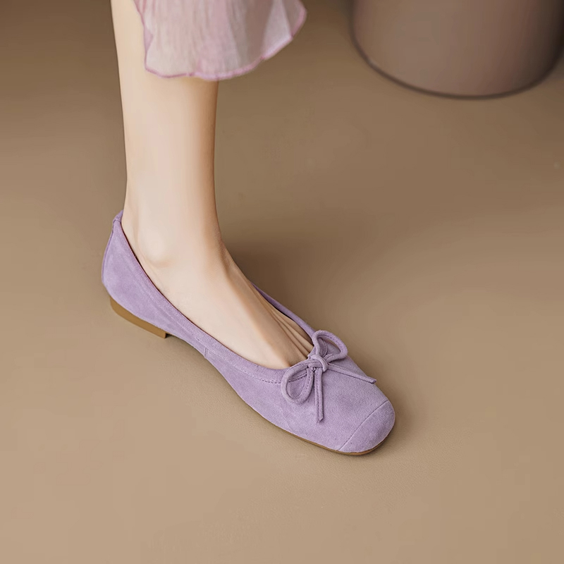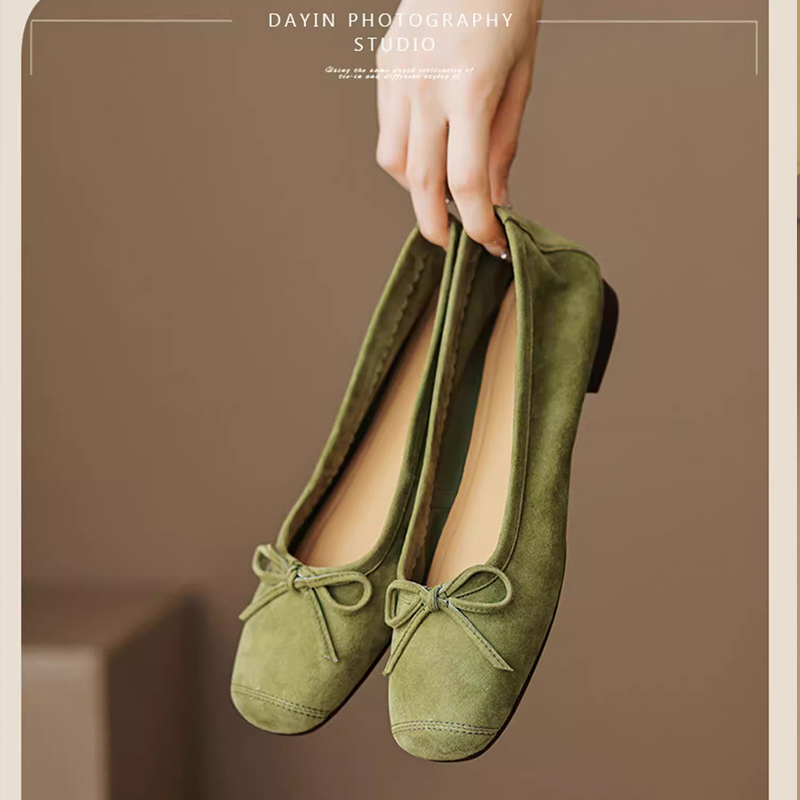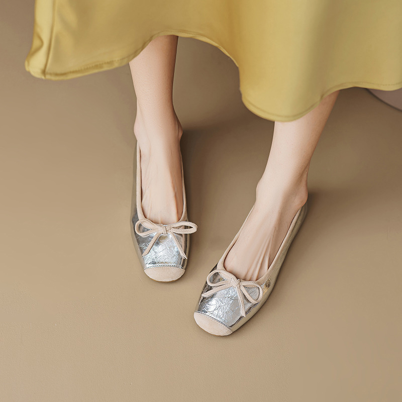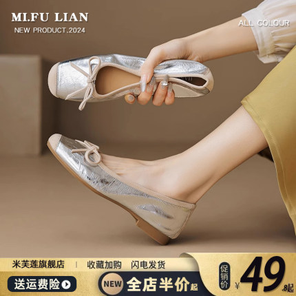 蝴蝶结平底芭蕾舞鞋女2025春秋新款四季鞋方头浅口软底奶奶鞋单鞋