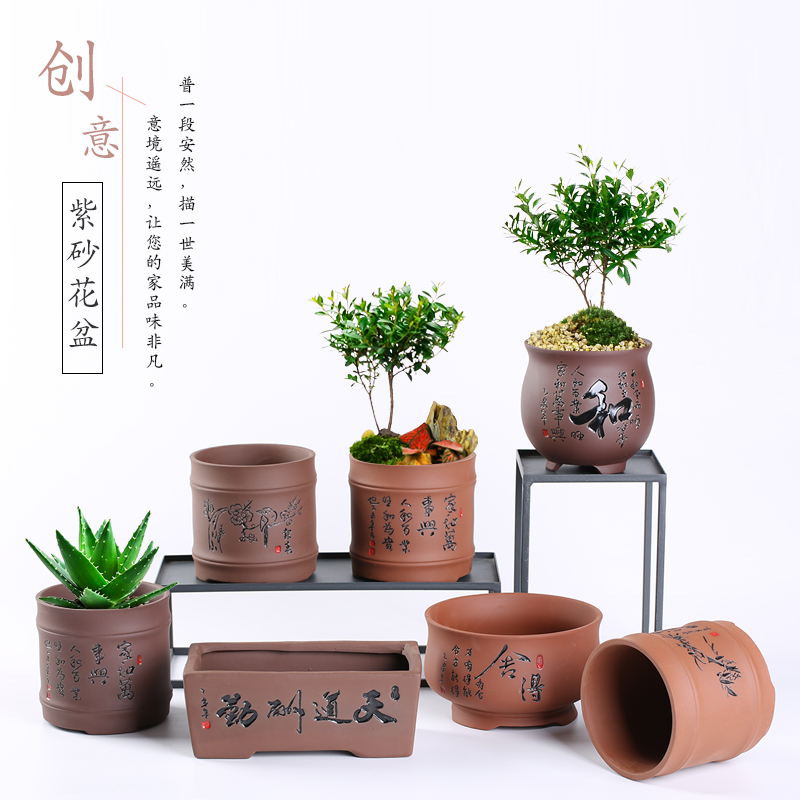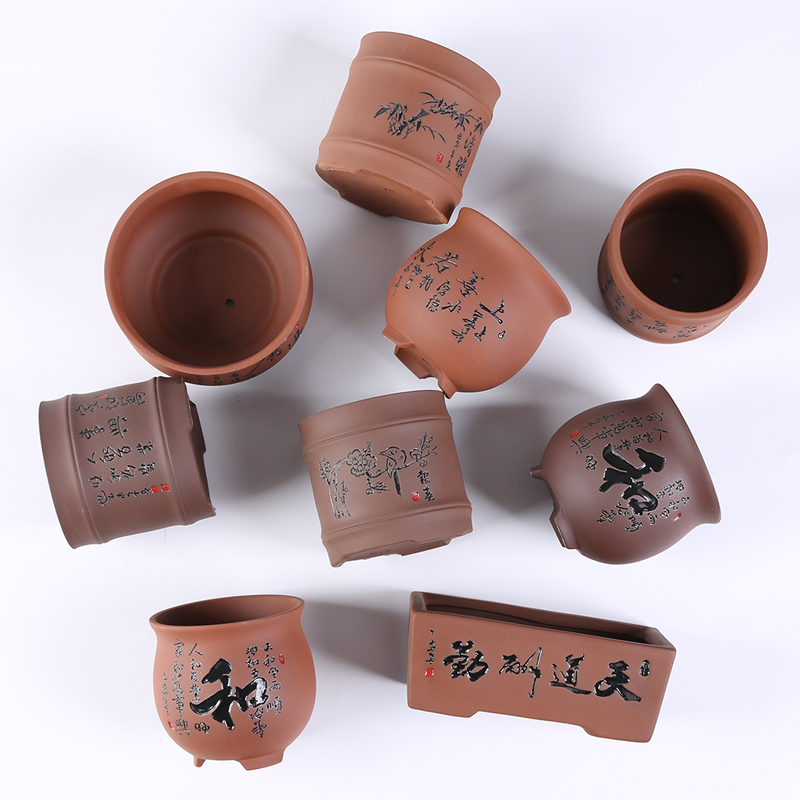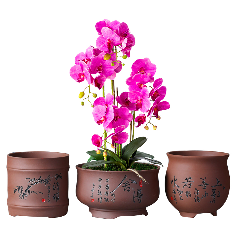 紫砂蝴蝶兰专用花盆陶瓷复古家用多肉盆栽透气大小老桩文竹盆特价