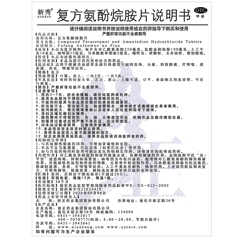 修正新秀复方氨酚烷胺片12片感冒发热头痛四肢酸痛咽痛鼻塞打喷嚏