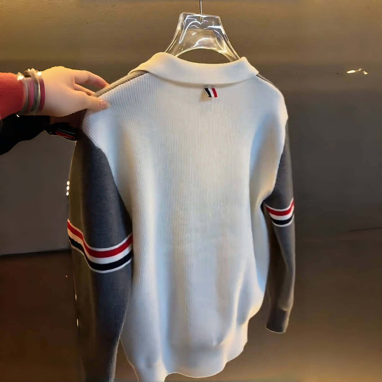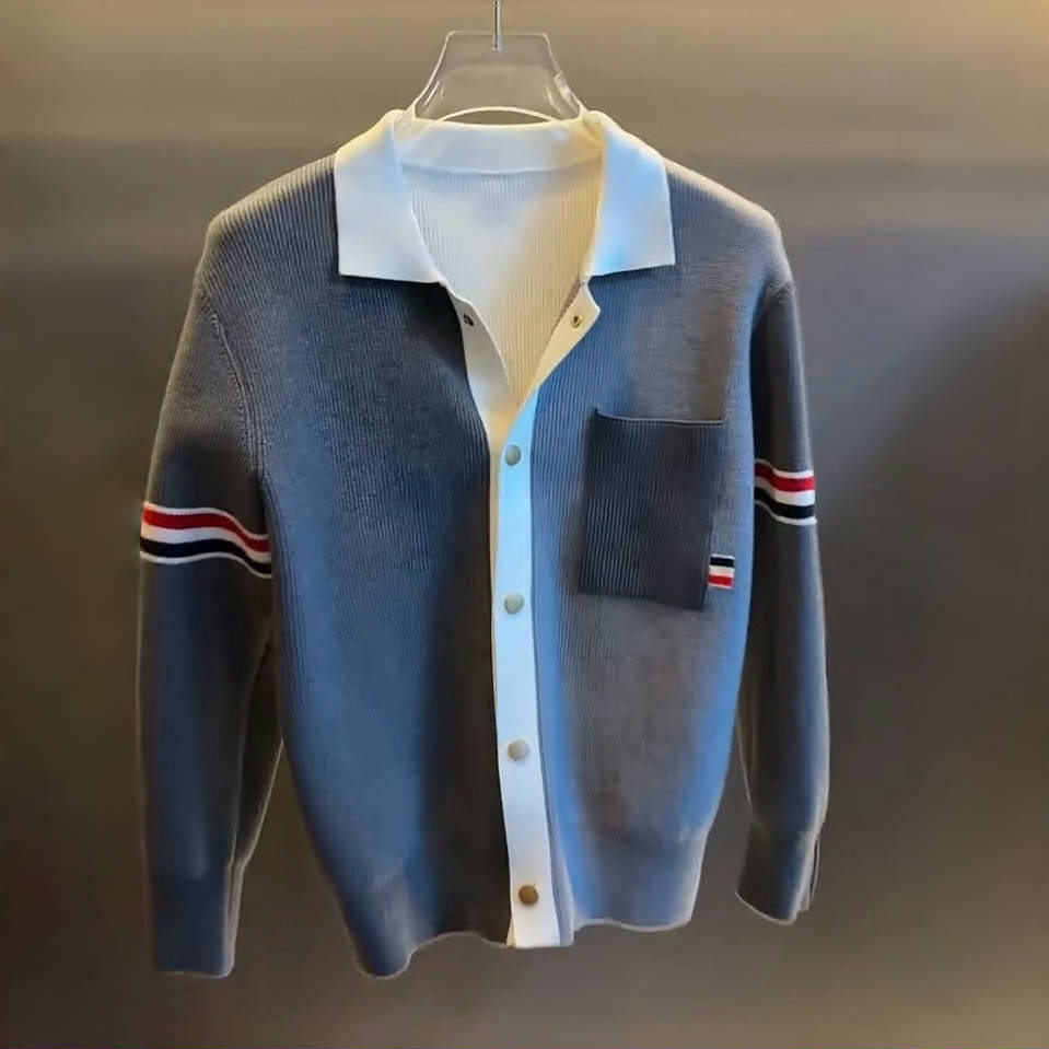 高档拼色翻领针织开衫外套男士秋季时尚帅气针织衫毛衣男装9061