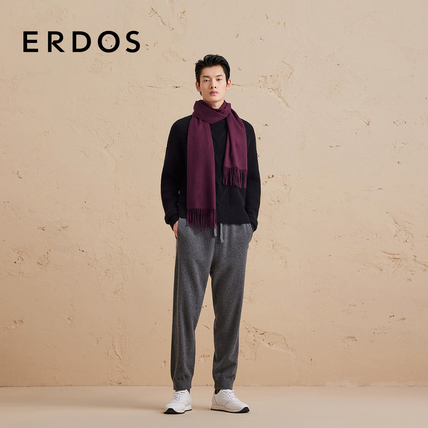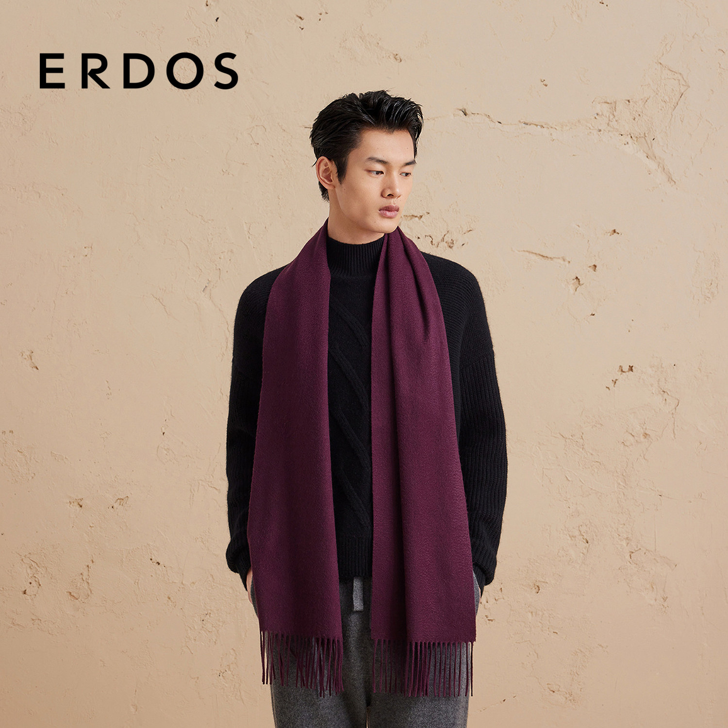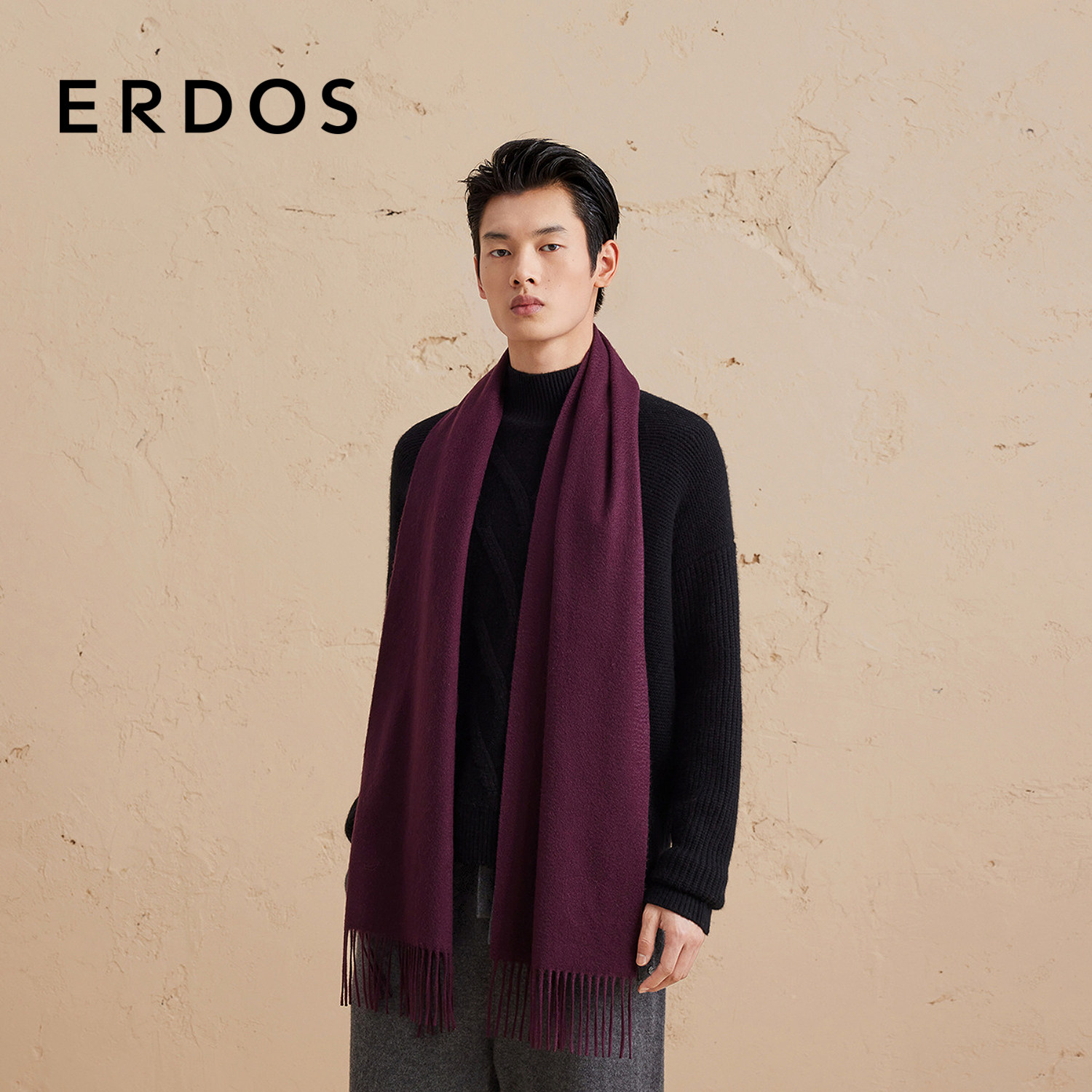 【羊绒围巾】ERDOS 男装多色选择水纹刺绣围脖秋保暖百搭