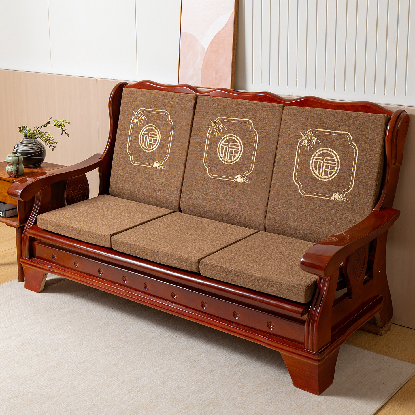 中式实木沙发垫坐垫带靠背一体红木沙发垫子防滑海绵垫老式木椅垫