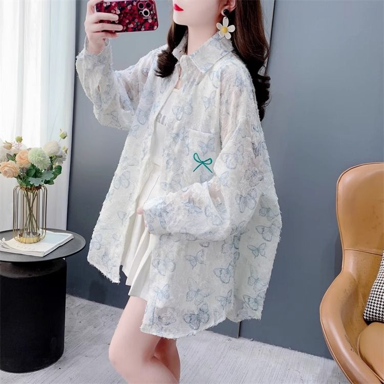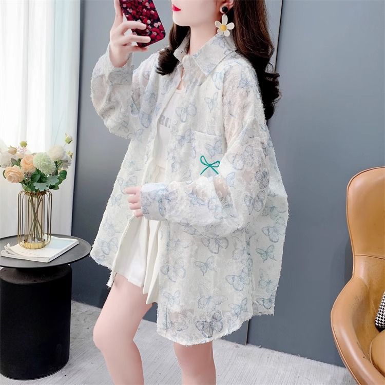 大码女装设计感薄款防晒衬衫女夏季新款韩版宽松百搭洋气衬衣外套