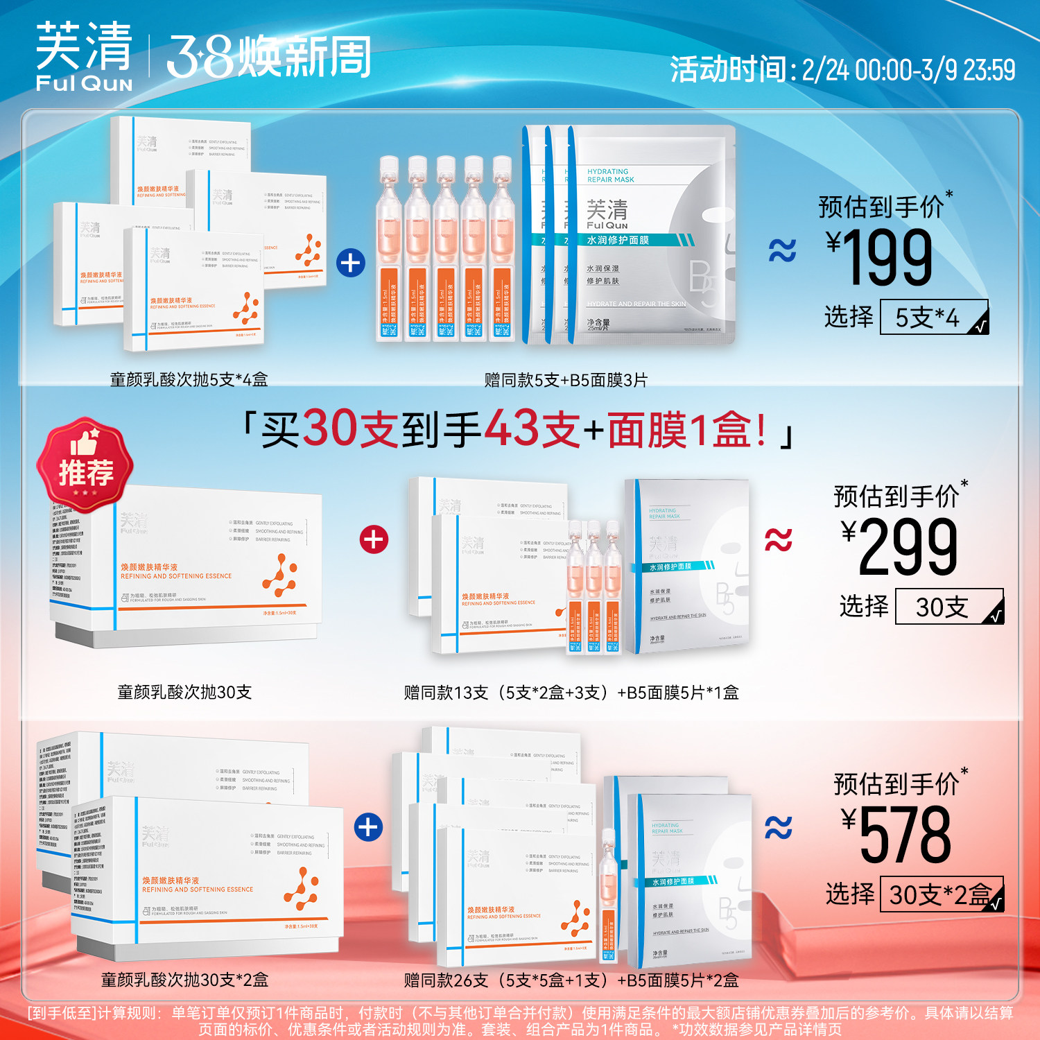 芙清童颜乳酸次抛精华液细嫩肌肤去角质祛痘保湿舒缓控油温和紧致