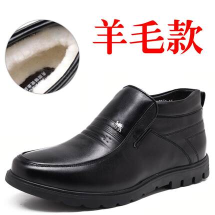 新款冬季高男士商务休闲棉皮鞋真皮3小码6羊毛537中3老年加绒男棉