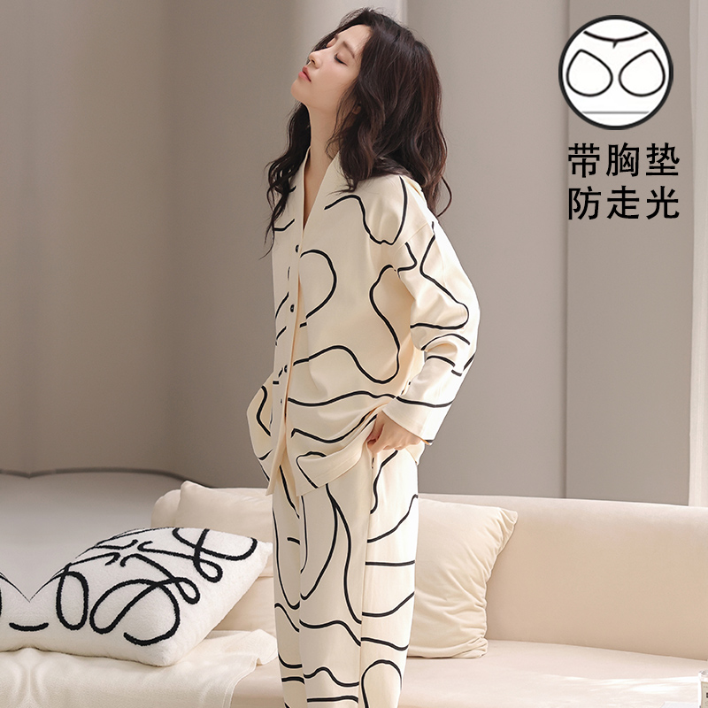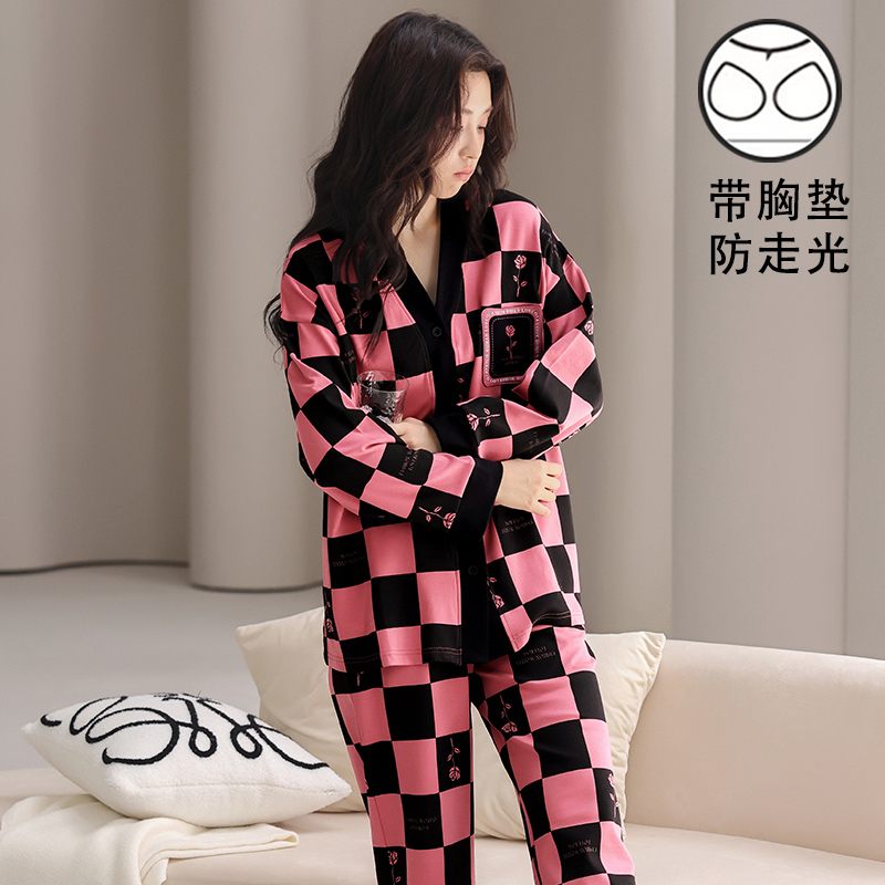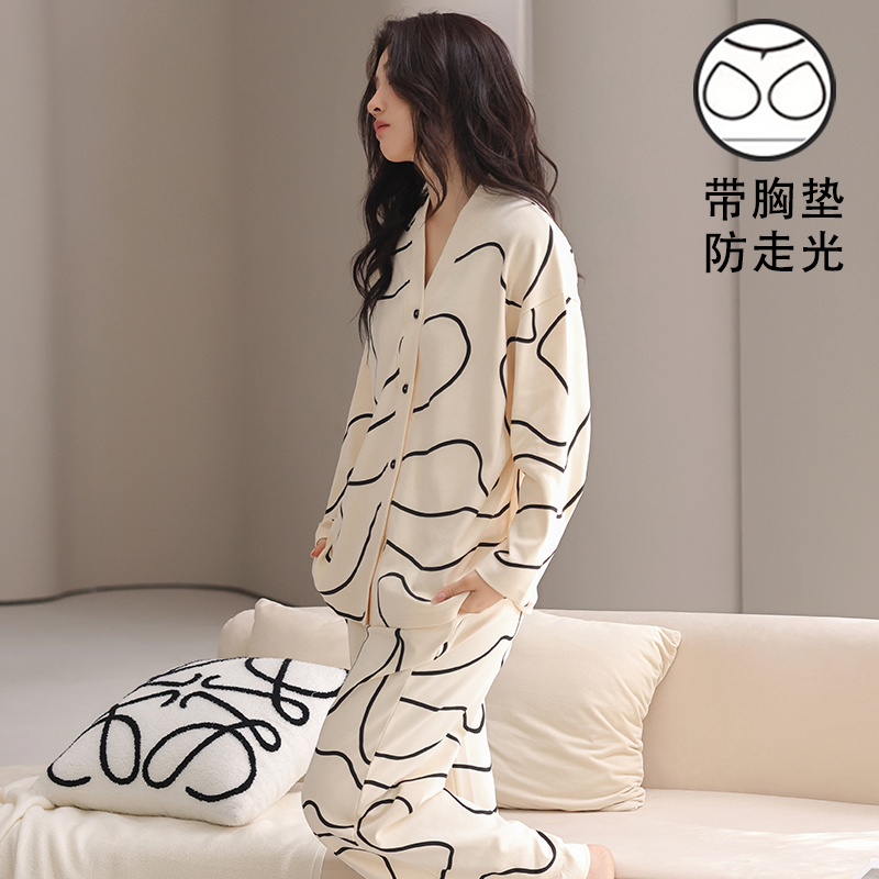 女款春秋季睡衣可外穿开衫带胸垫
