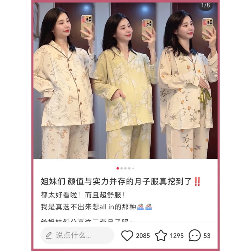 MAMILINE月子服纯棉印花产后孕妇睡衣哺乳家居服月子睡衣四季通用