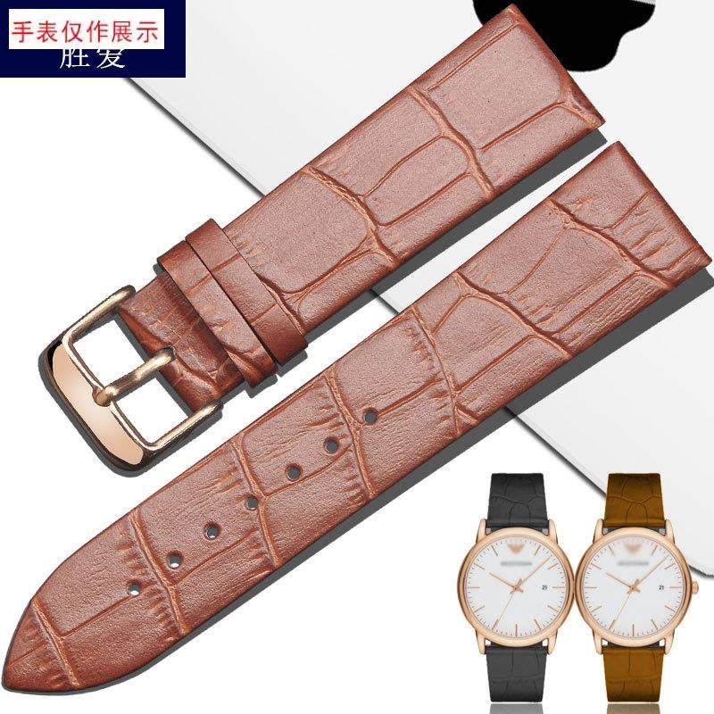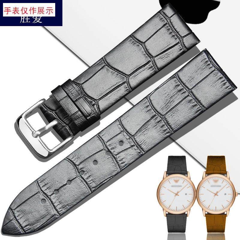 适用牛皮真皮表带超薄阿玛尼ar2502手表皮带22mm250125.06男表链