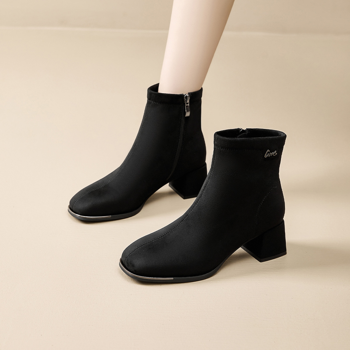 戈美其2025秋冬新款女鞋加绒棉鞋英伦风妈妈羊皮增高短靴子马丁靴