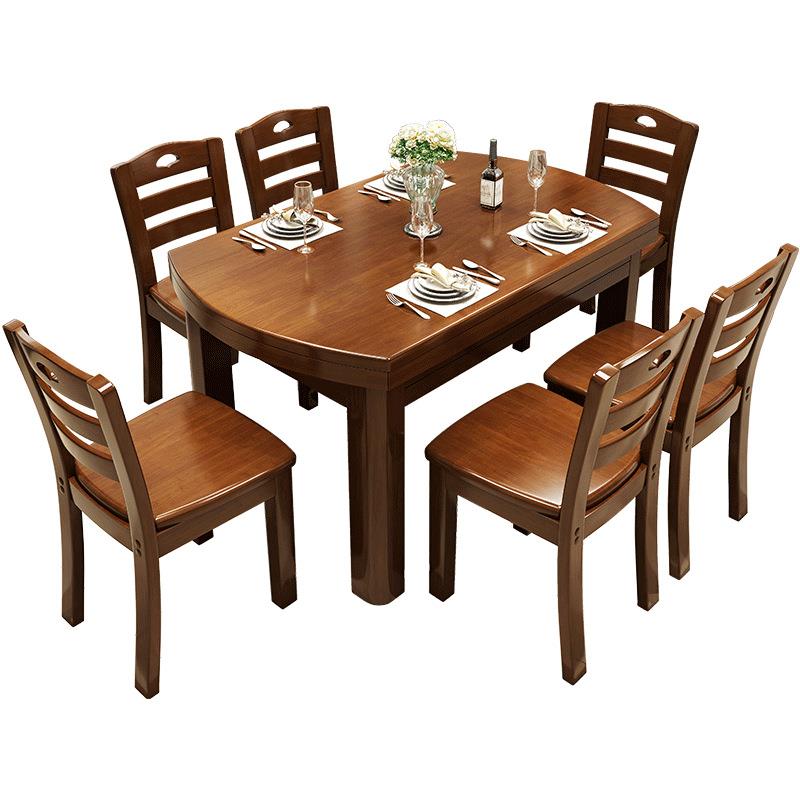 实木餐桌椅组合现代简约伸缩折叠圆形餐桌饭桌小户型家具西餐餐桌