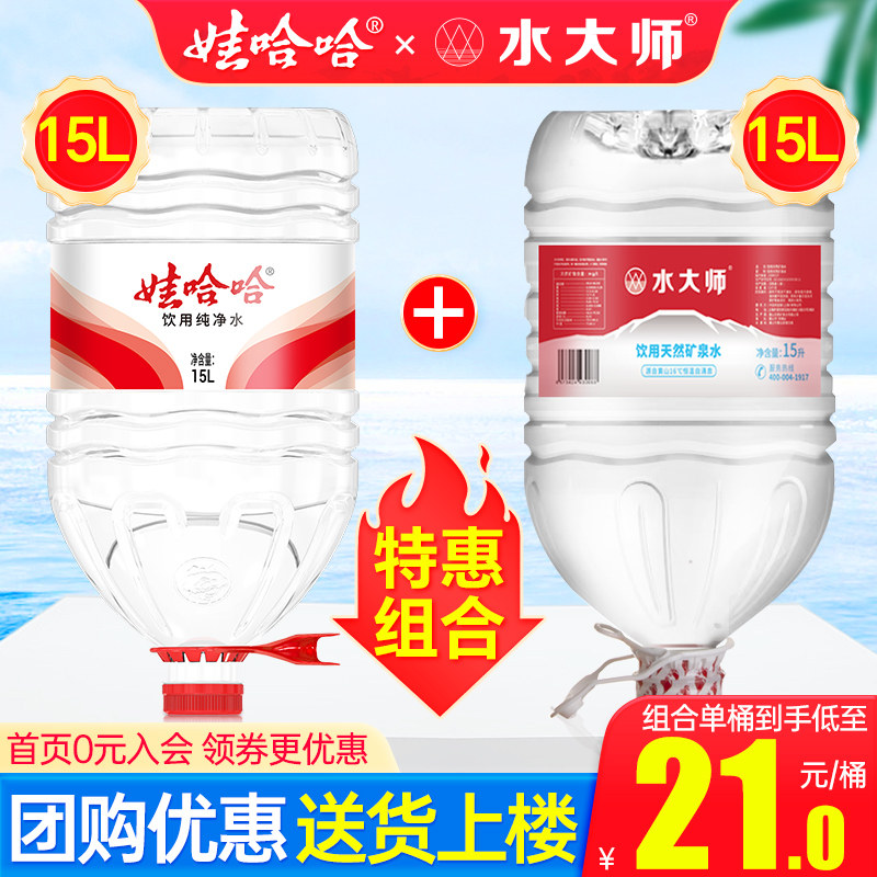 娃哈哈纯净水15L*2桶家庭大瓶桶装泡茶饮用水大师15升天然矿泉水
