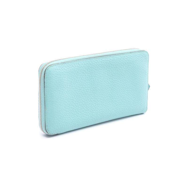 中古Hermes爱马仕女B级9新Azap Long牛皮长钱包蓝色