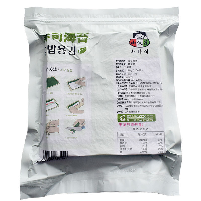 韩国进口小伙子烤海苔紫菜包饭寿司海苔大张即食100张大包装 商用