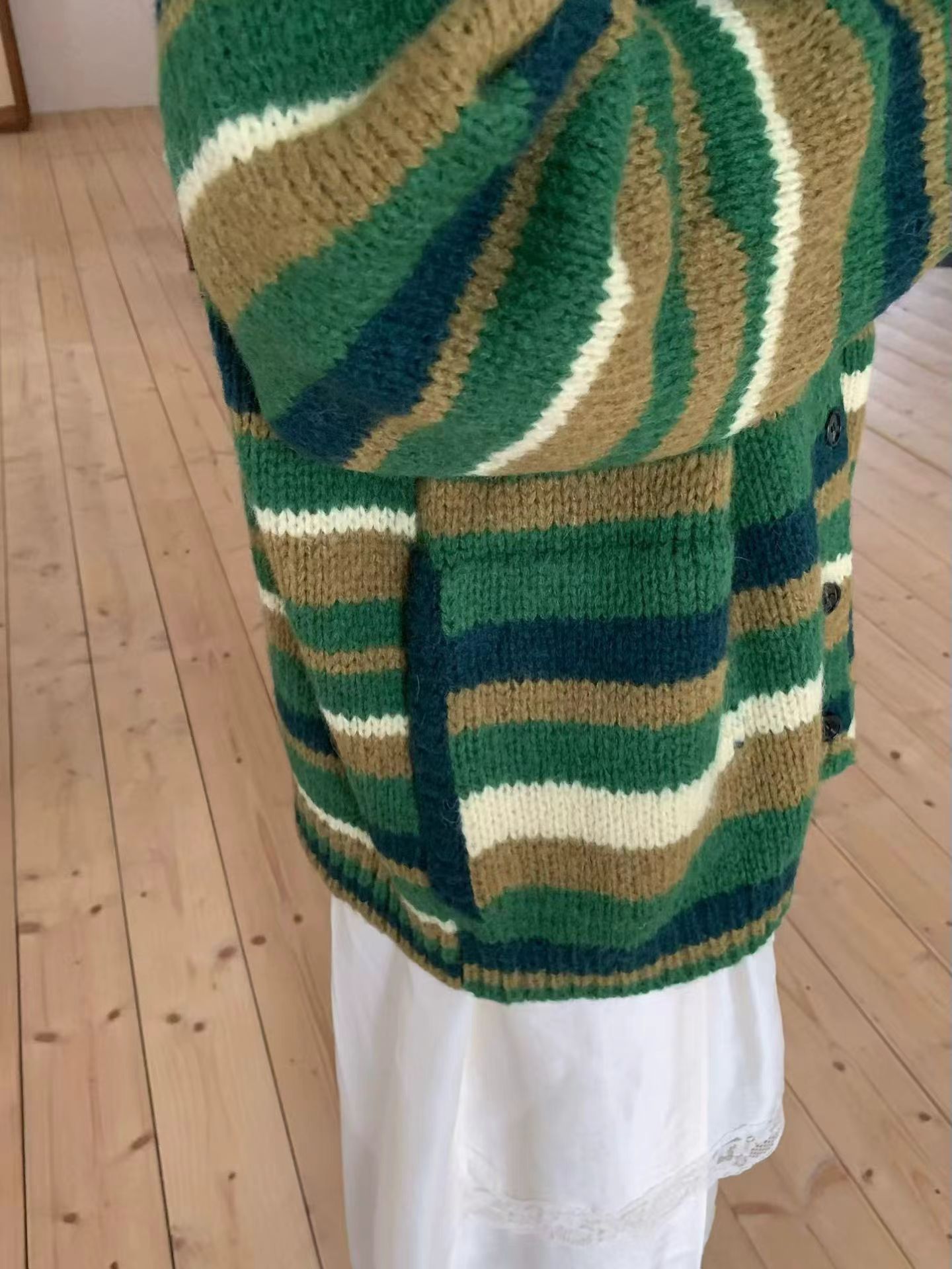 韩国东大门正品女装2025新款百搭圆领条纹长袖针织开衫女宽松毛衣