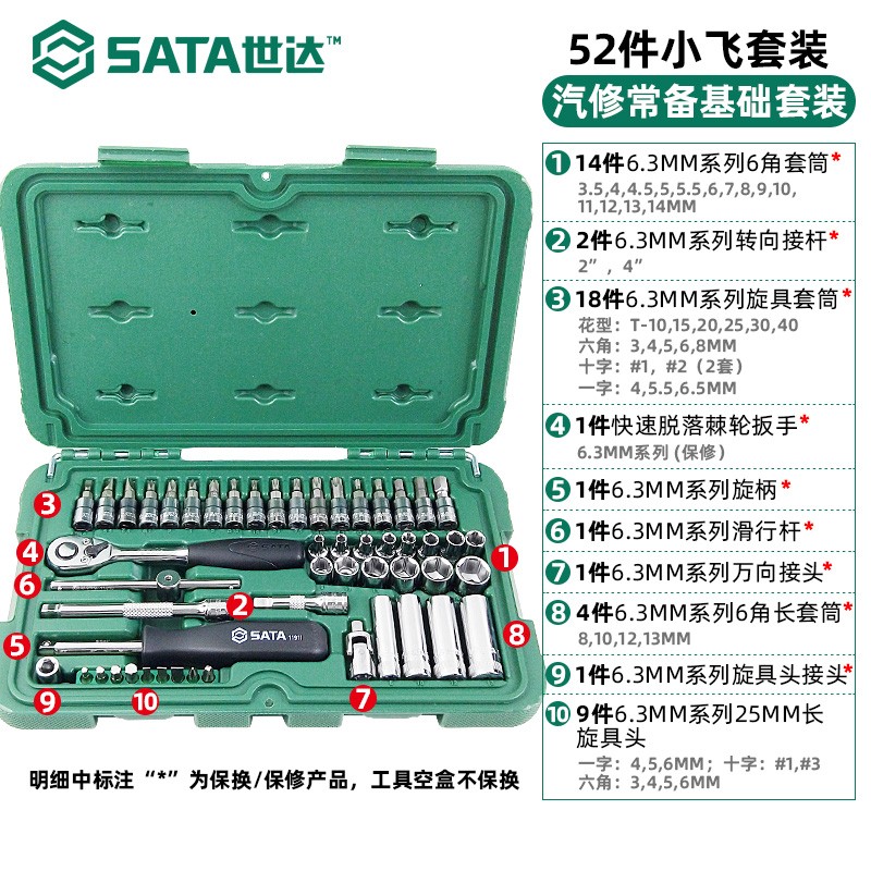 世达棘轮扳手汽车维修工具套装52件汽修大全sata小飞套筒组09002