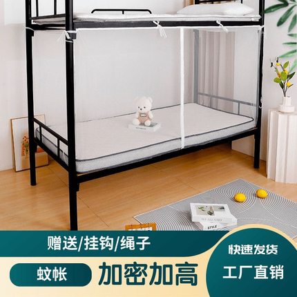 特加密大学生宿舍蚊帐拉链0.9/1.5米1.2家用寝室防尘顶上下铺单人