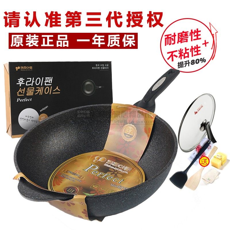 Kitchen art韩国麦饭石不粘锅炒锅电磁炉通用32cm正品进口麦石锅